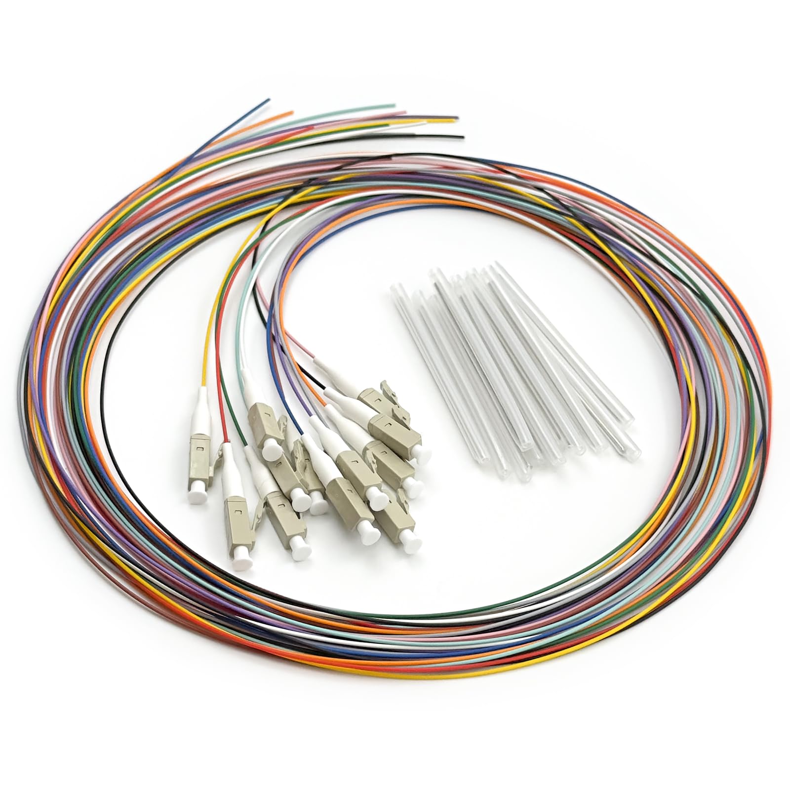 LC UPC 12 Fibers OM3 Multimode Unjacketed Color-Coded 0.9mm Fiber Optic Pigtail