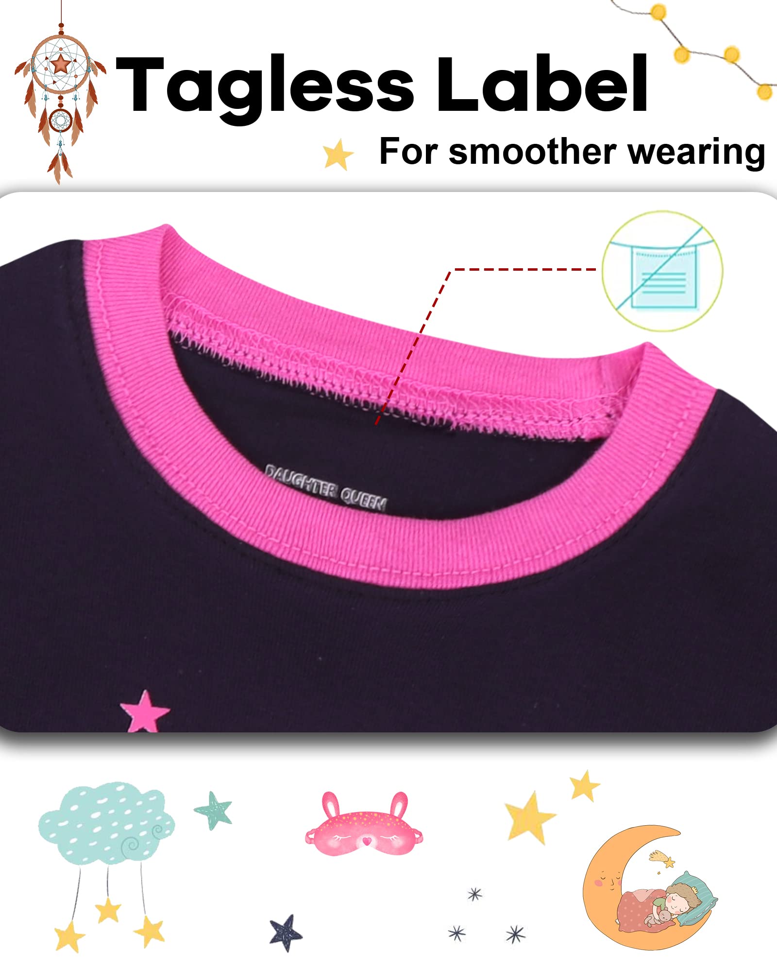 Safety: For kids' safety, our sleepwear is snug-fitting. And the T-Shirt pajamas sets are designed by the figure of most girls, including size 18-24 Months kids pajamas, 2t pajamas, 3t, 4t, size 5, size 6, size 7 size 8, size 10, size 12. And please attention, we advise that you could check the size chart carefully and choose the proper size if your little one is stronger than others