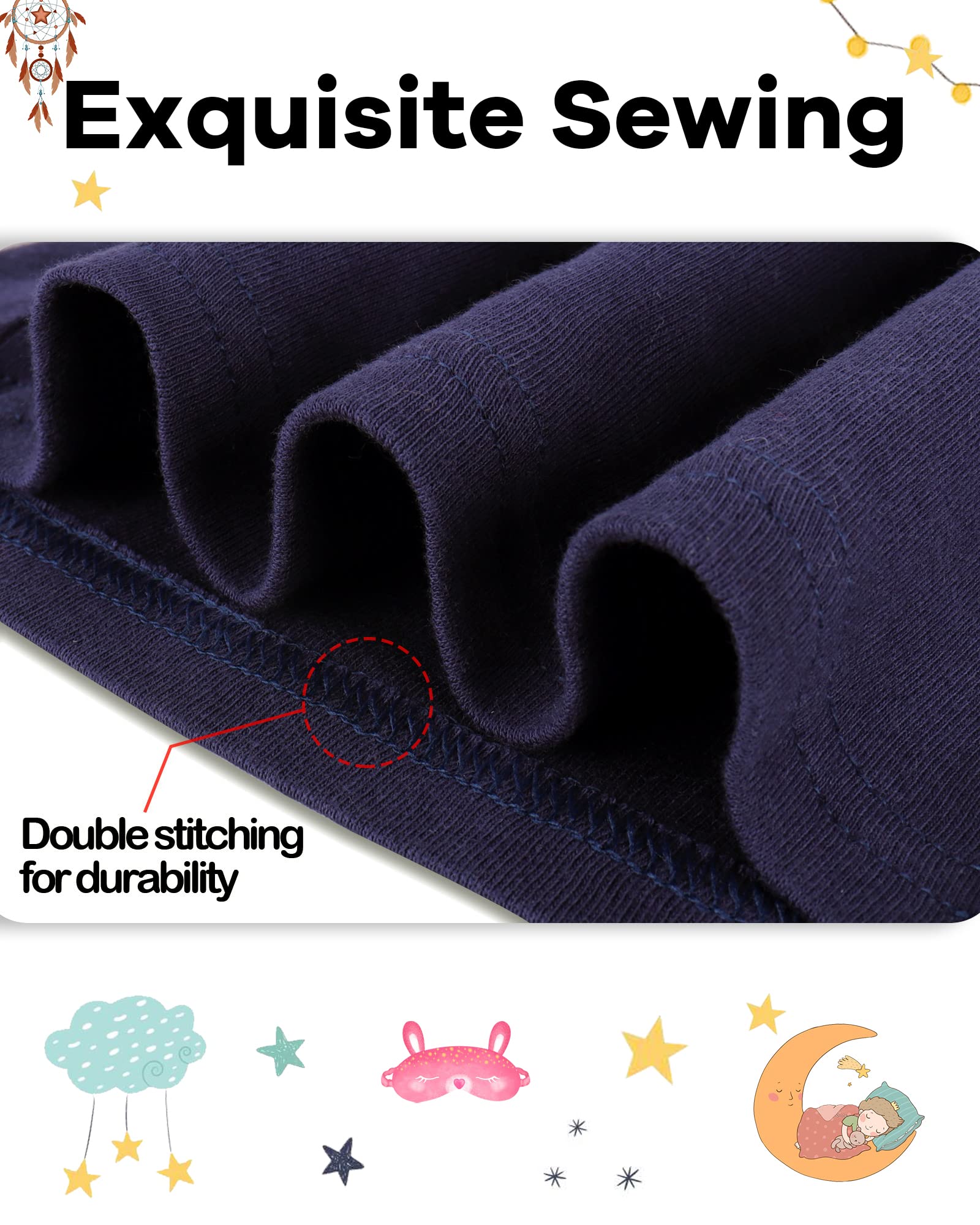 100% Cotton: The Girls PJ Sets with 4pc are 100% cotton, which are very soft, breathable, and lightweight. The natural cotton long sleeve pajamas for girls ensure comfortable night sleep, are also good for children's skin. We have been dedicating to providing kids with super comfy pajamas