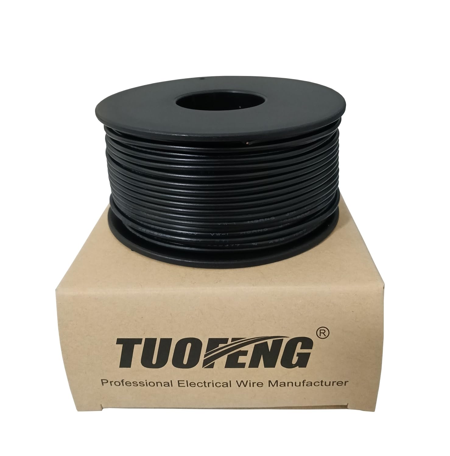 TUOFENG 22 AWG Black Wire 100ft: This wire is perfect for your projects requiring 22 gauge solid core hookup wires. Resistant to oil, solvents, and chemicals, it can withstand temperatures from -40°C to 80°C.