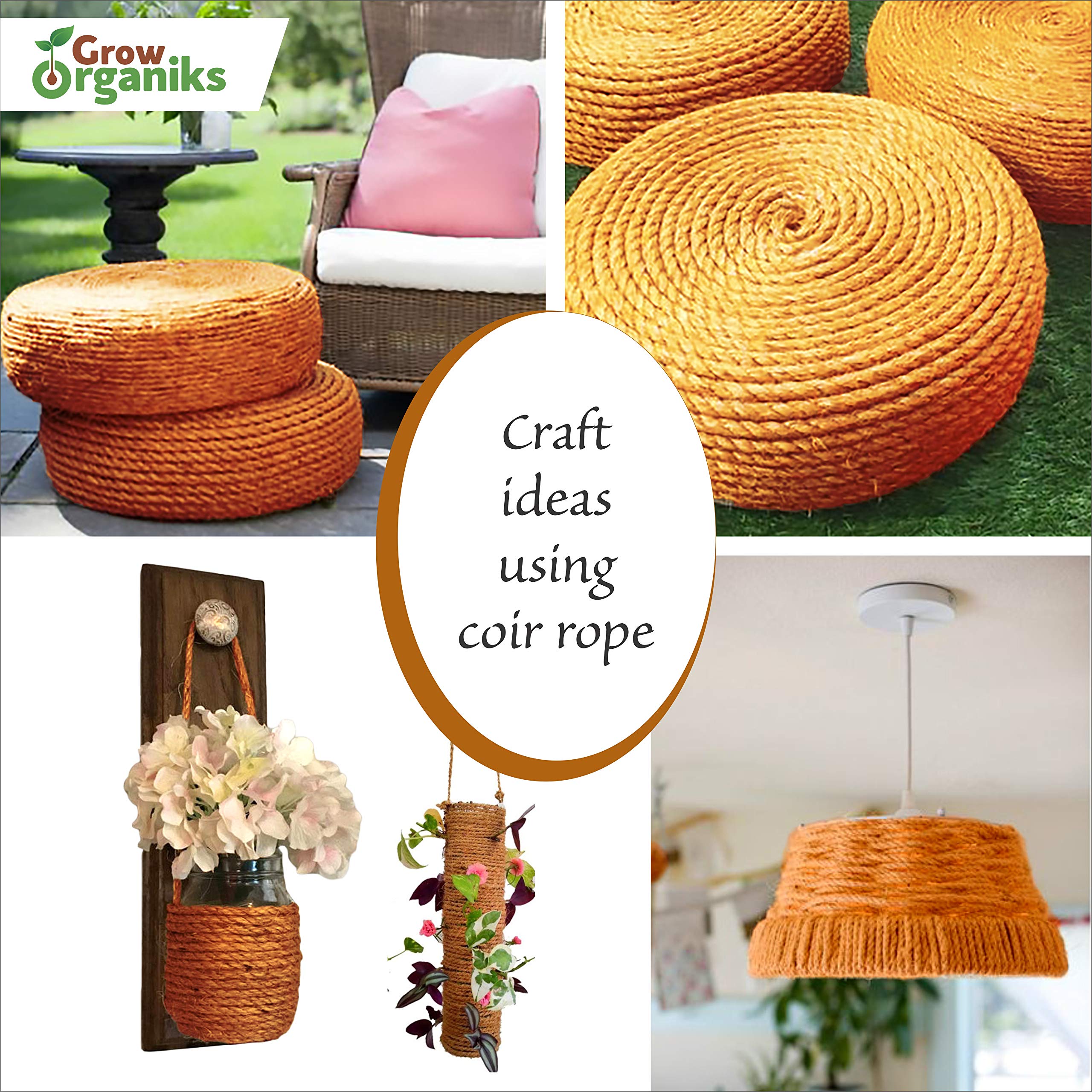 ①Coir fibre rope or Coir rope are extracted from the fibrous outer cover of the coconut🥥 . They are light brown in color. ②Most of the products are used as raw material for horticulture, geo-textile, erosion control, packaging and mattresses industry. ③Coconut fiber rope is made from 100% organic coconut fiber; therefore no dyes or chemicals are used during the manufacturing process. ④In short, Grow Organiks coconut fiber rope are from -Handmade natural coconut fiber Made with organic coconut husk 100% compostable Used for landscaping and gardening, home decoration and packaging