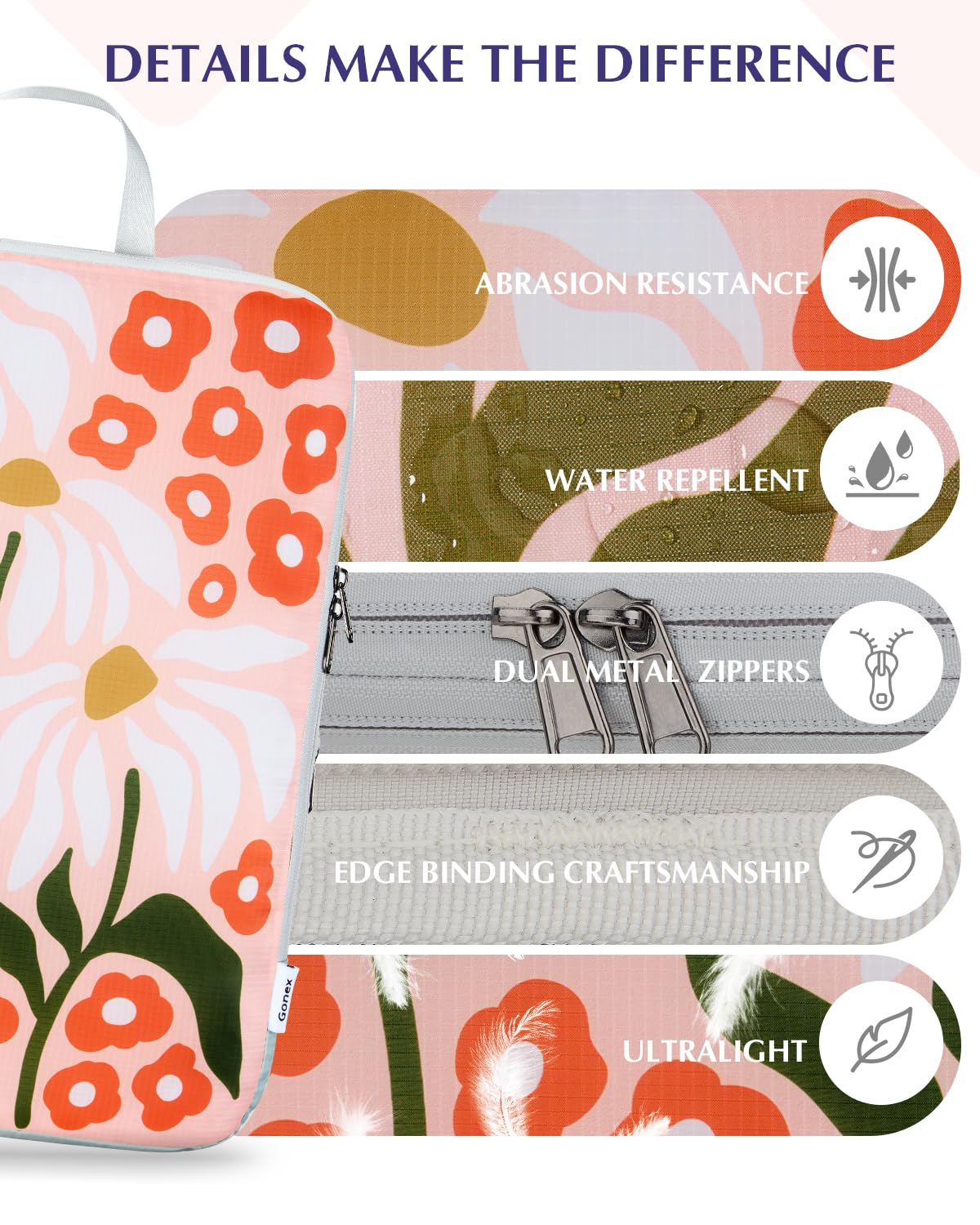 Space-Saving Packing Cubes: Compression zipper design of Gonex packing cubes help you with packaging your clothes by compressing the air out of them. Save up to 30% more space, allowing you to pack more clothes in your suitcase