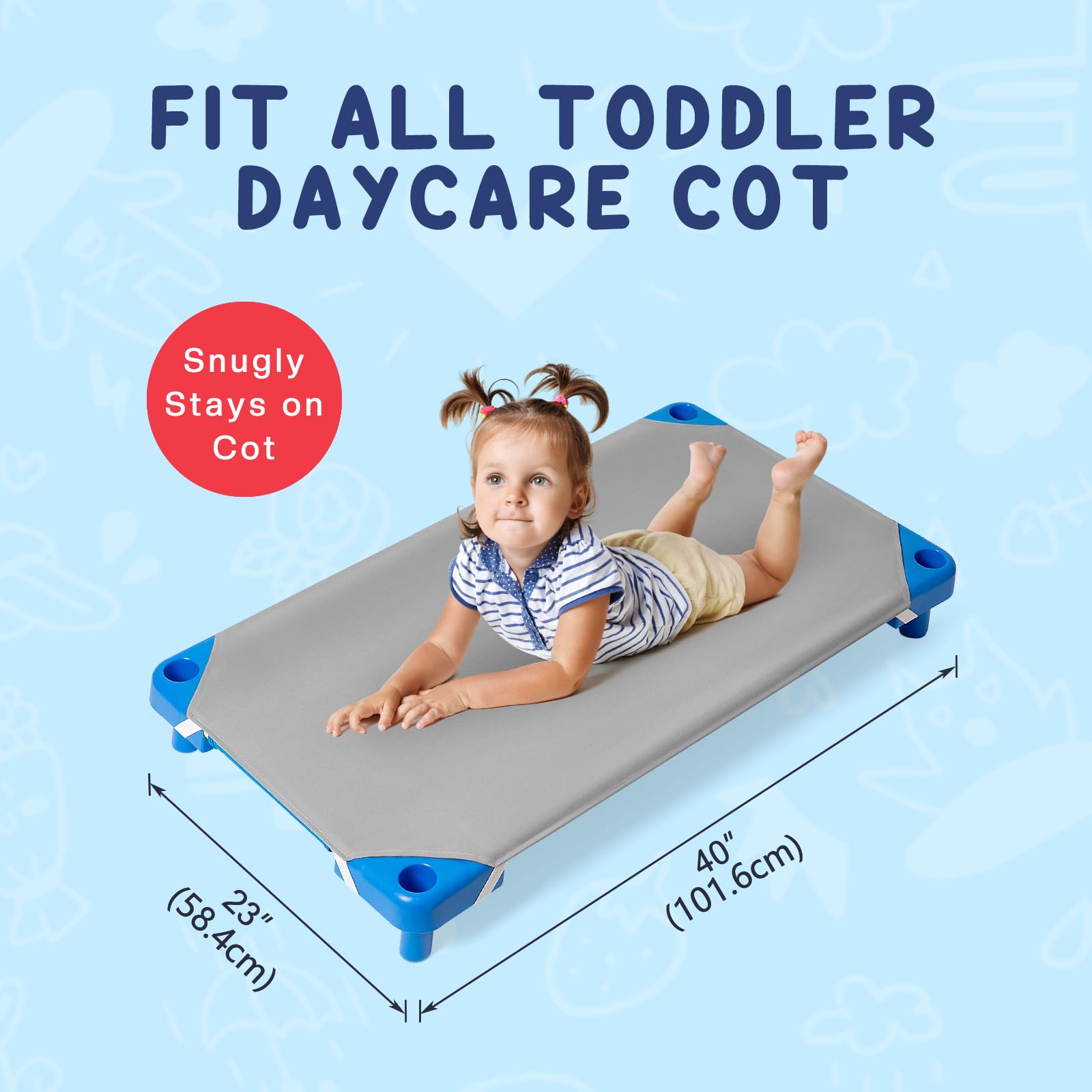 Fits Toddler Size Daycare Cot: Measures 23"W by 40"L, our fitted cot sheets for toddler fits toddler size daycare cot, pre-school cot, toddler nap sleeping time cot