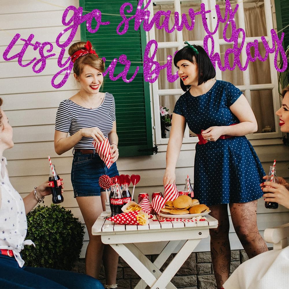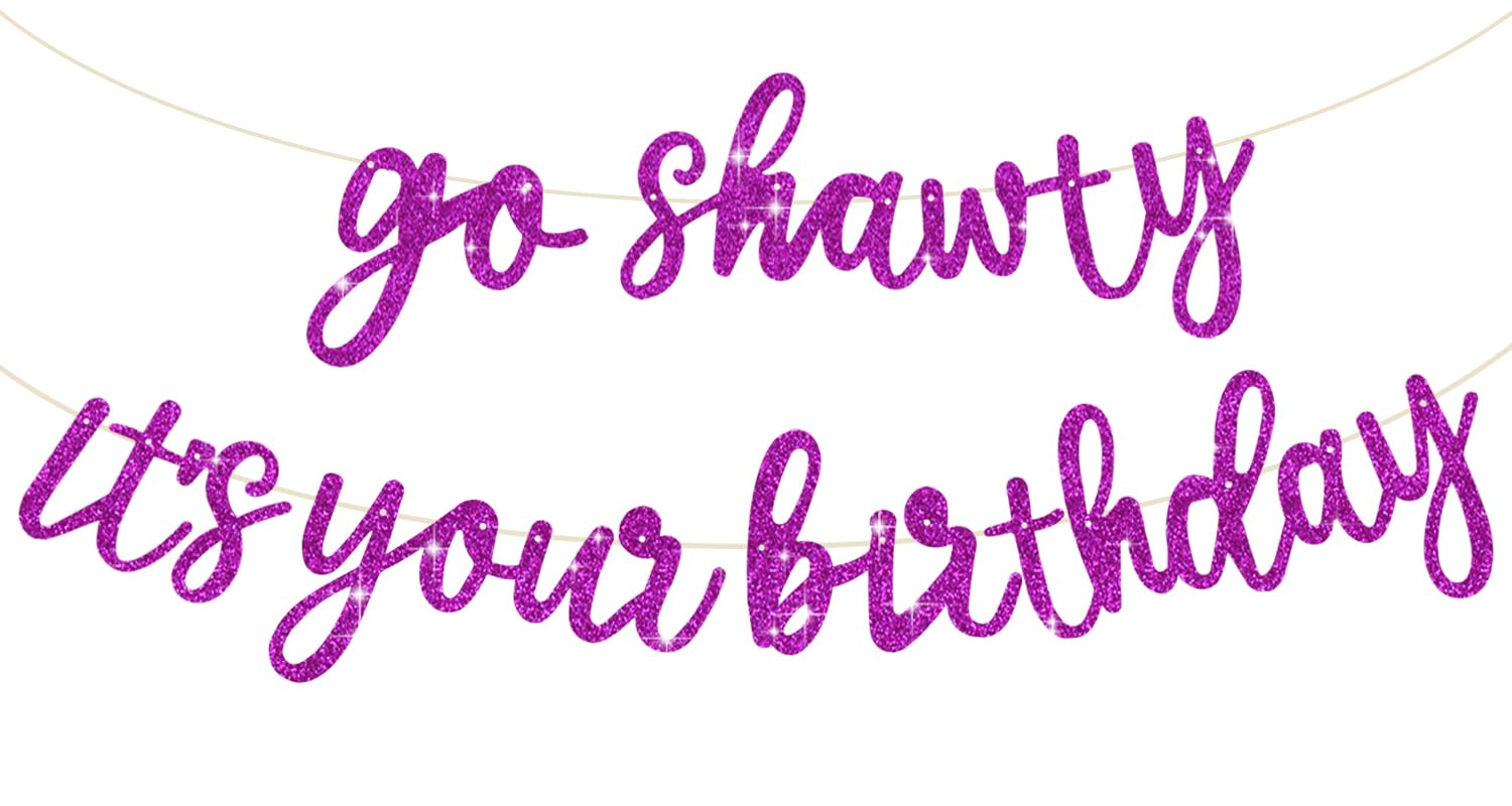 Product includes : A Purple Glitter NO DIY Go Shawty It's Your Birthday Banner is included in our product. It is a very convenient birthday banner that can save your time and decorate your birthday party very well.