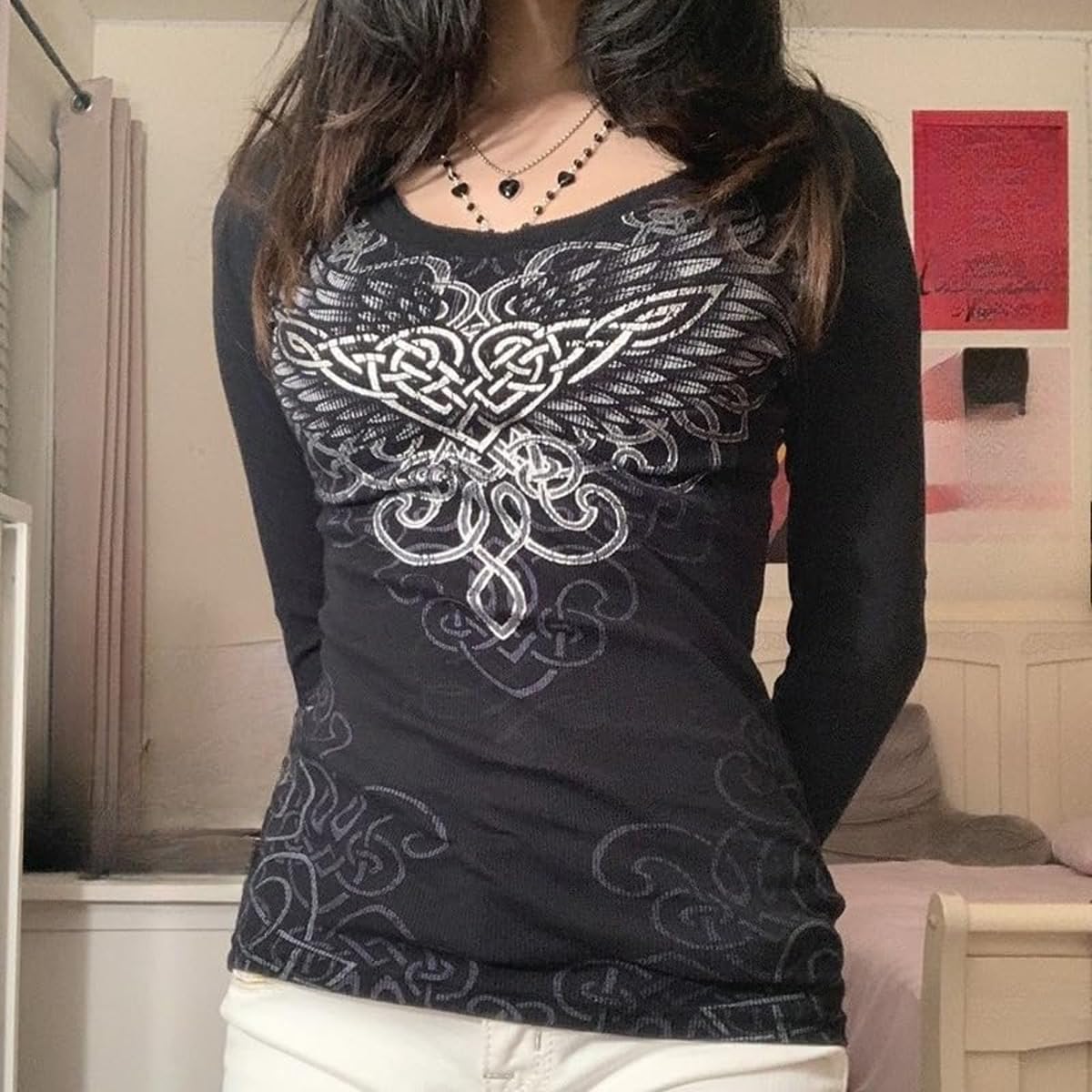 Feature: vintage long sleeve shirts,long sleeve graphic tees for women,graphic long sleeve shirts for women,grunge clothing, emo tops for teen girls, emo outfits for women, 2000s outfits for women, goth clothes for women, y2k shirts, y2k outfits for women, y2k fashion, graphic baby tees for women y2k, women graphic tees, graphic tees for teens, crop tops for teens