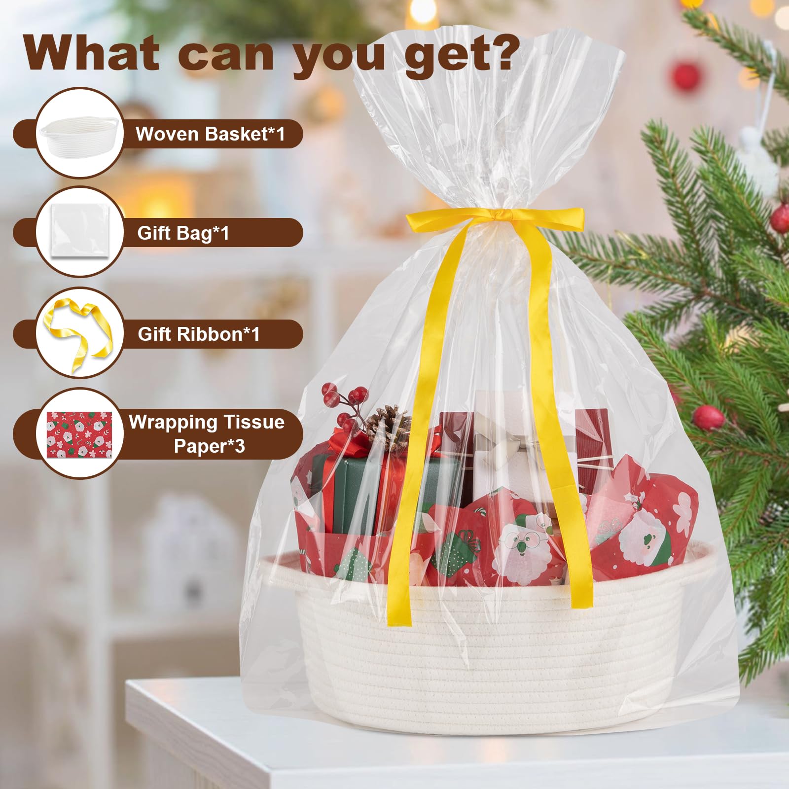 Ideal gift choice: This empty gift basket is cute and stylish, each small basket comes with a gift bag and ribbon, as well as 3 sheets of gift wrap tissue paper, which can better decorate, protect the stored items and can be used as a gift basket at any time