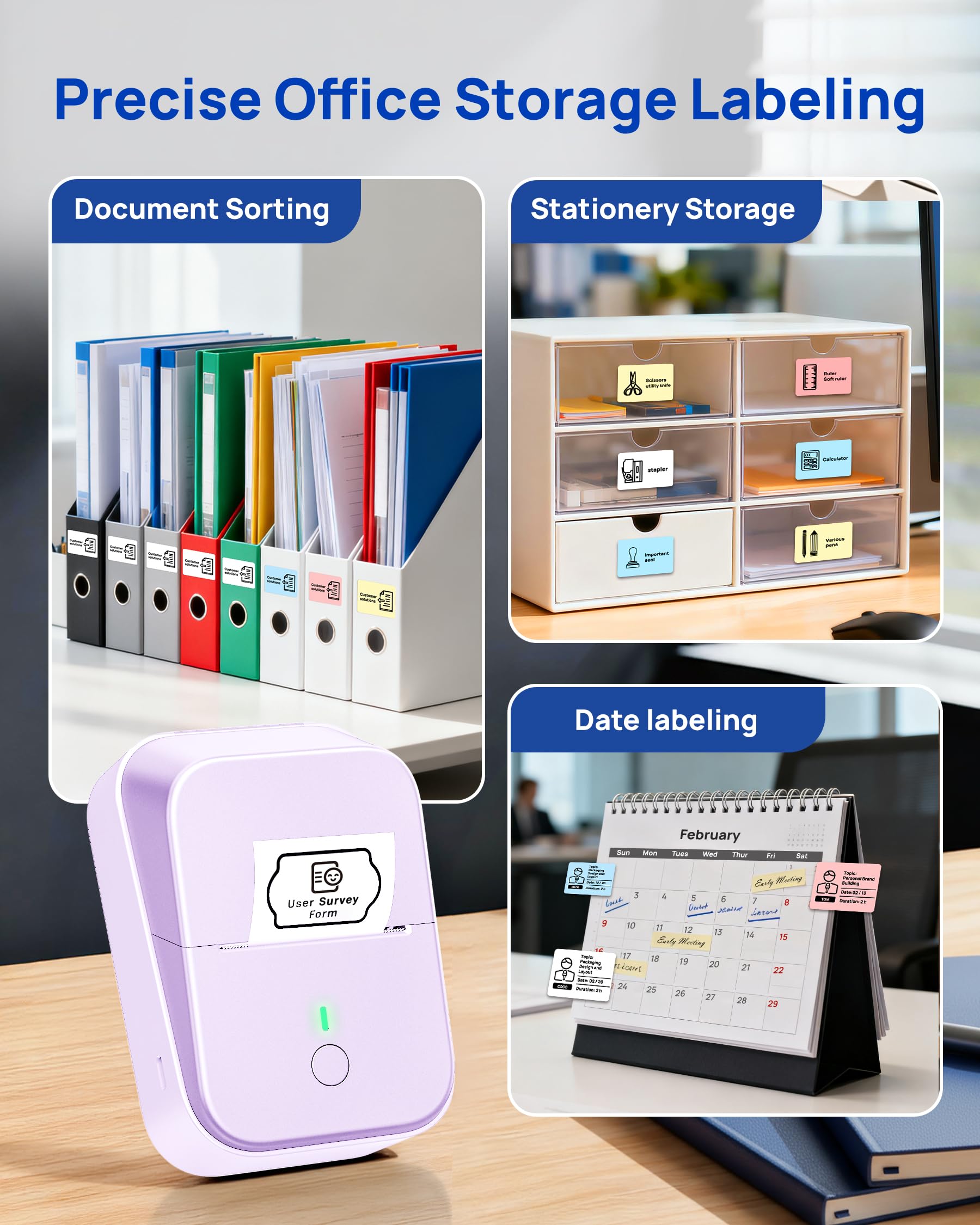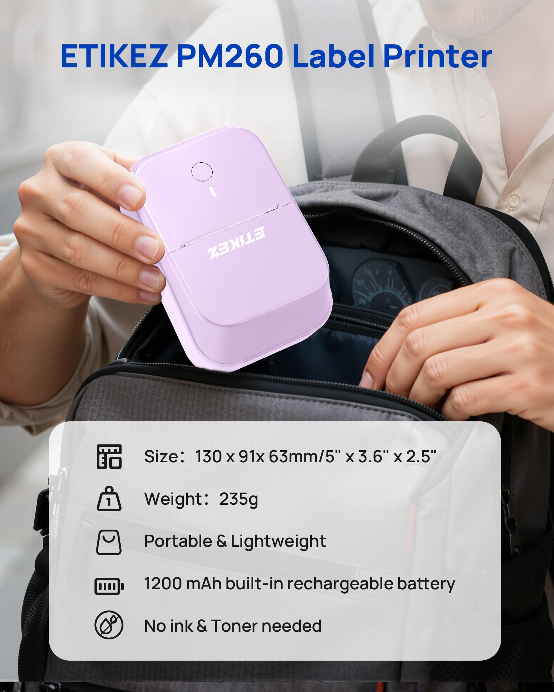 Inkless Label Maker – No ink, no mess! Print smart, save more! The PM260 uses thermal printing technology and only requires you to load labels and print. It features a built-in rechargeable battery with auto-shutoff after 15 minutes of inactivity to save energy. Perfect for precise tasks like labeling medicine bottles, organizing cables, tracking expiration dates, or creating clear, crisp reminders.