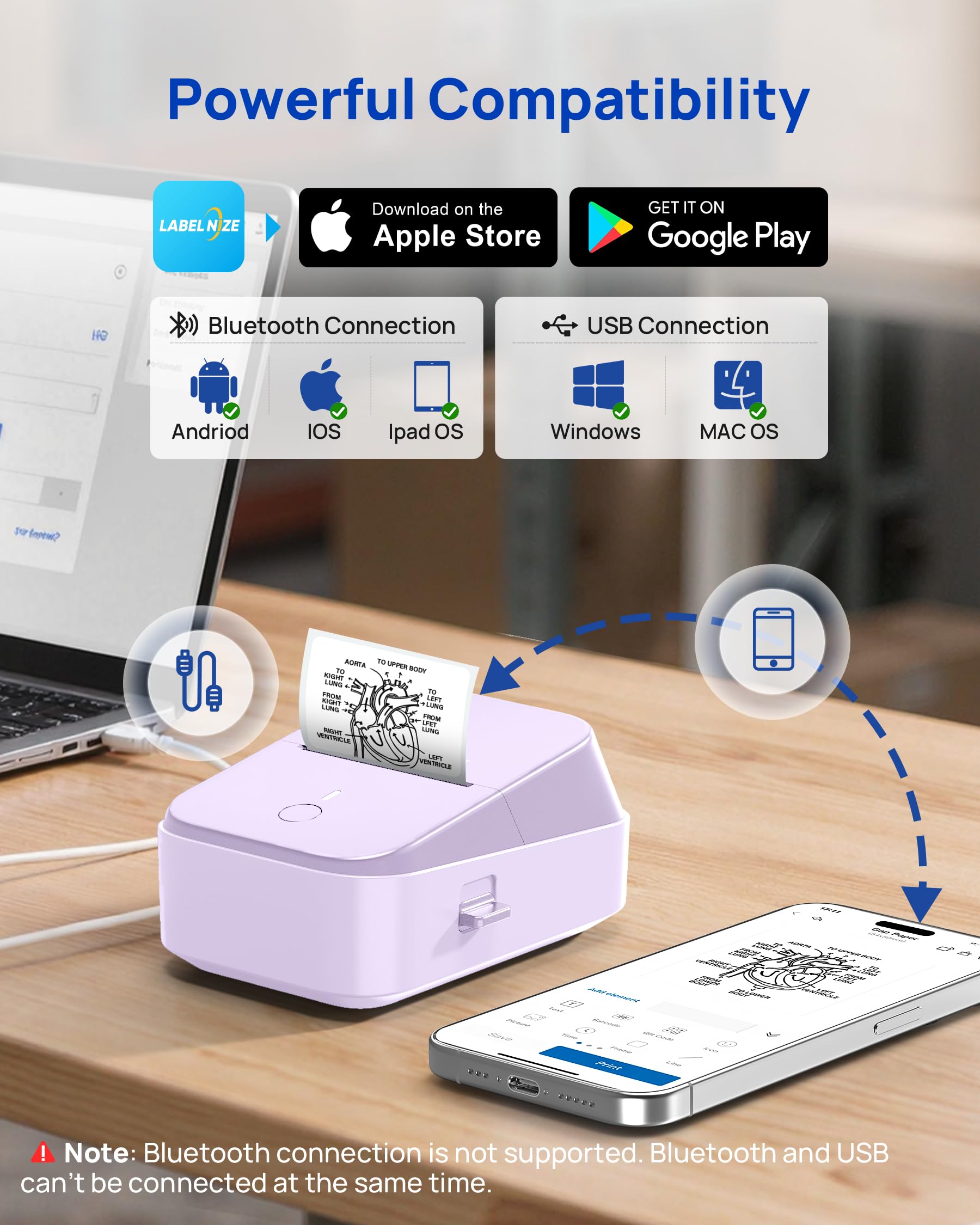Easy to Use – The PM260 Bluetooth Label Maker supports iOS, Android, and PC. For iOS & Android mobile devices, download the Labelnize app to print via Bluetooth. For PC use, you will need to download the PM260 driver and app from labelnize.com. Note: Do NOT connect directly via Bluetooth for any device.