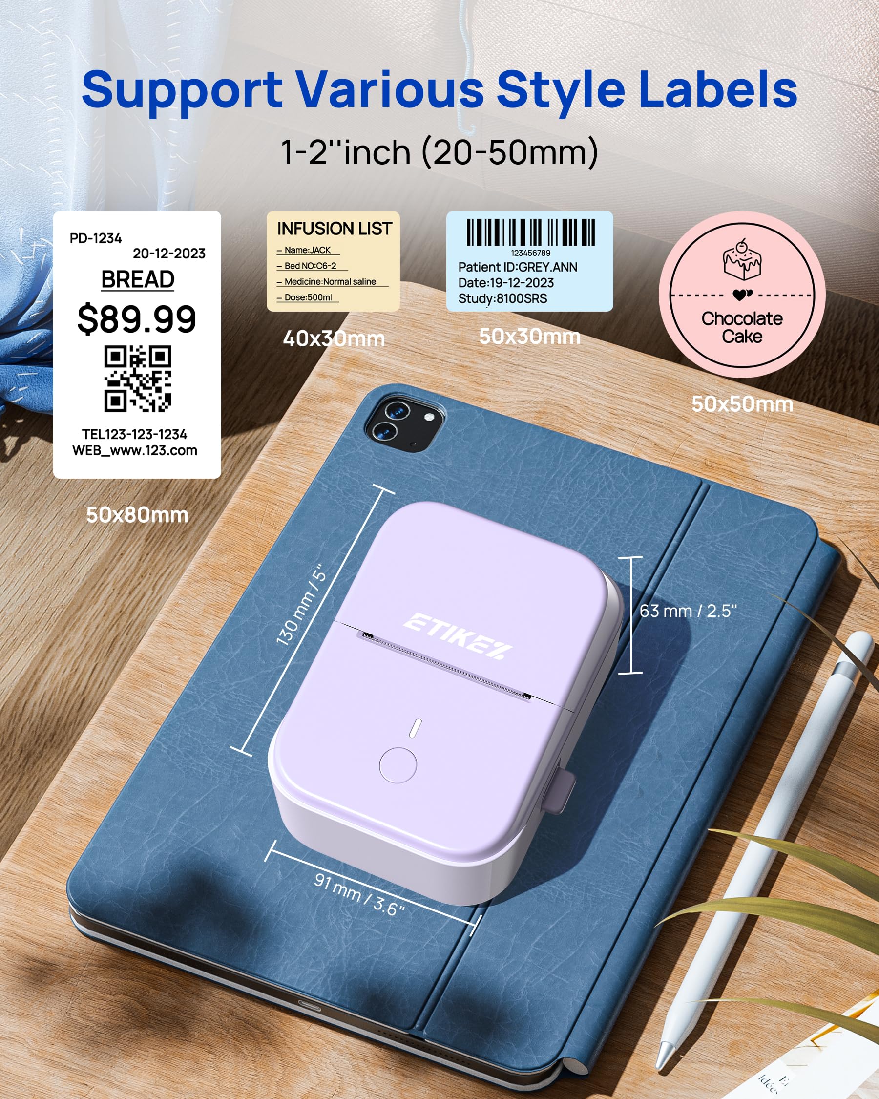 Premium Thermal Printing Quality – The ETIKEZ label maker uses BPA-free direct thermal technology. Equipped with high-speed chips and 203 DPI resolution, it delivers high-definition printing without ink or toner. This label maker supports label widths from 1" to 2" and includes one 40×30mm label tape. Note: Adjust the paper slot according to label size to secure the tape and ensure precise alignment.
