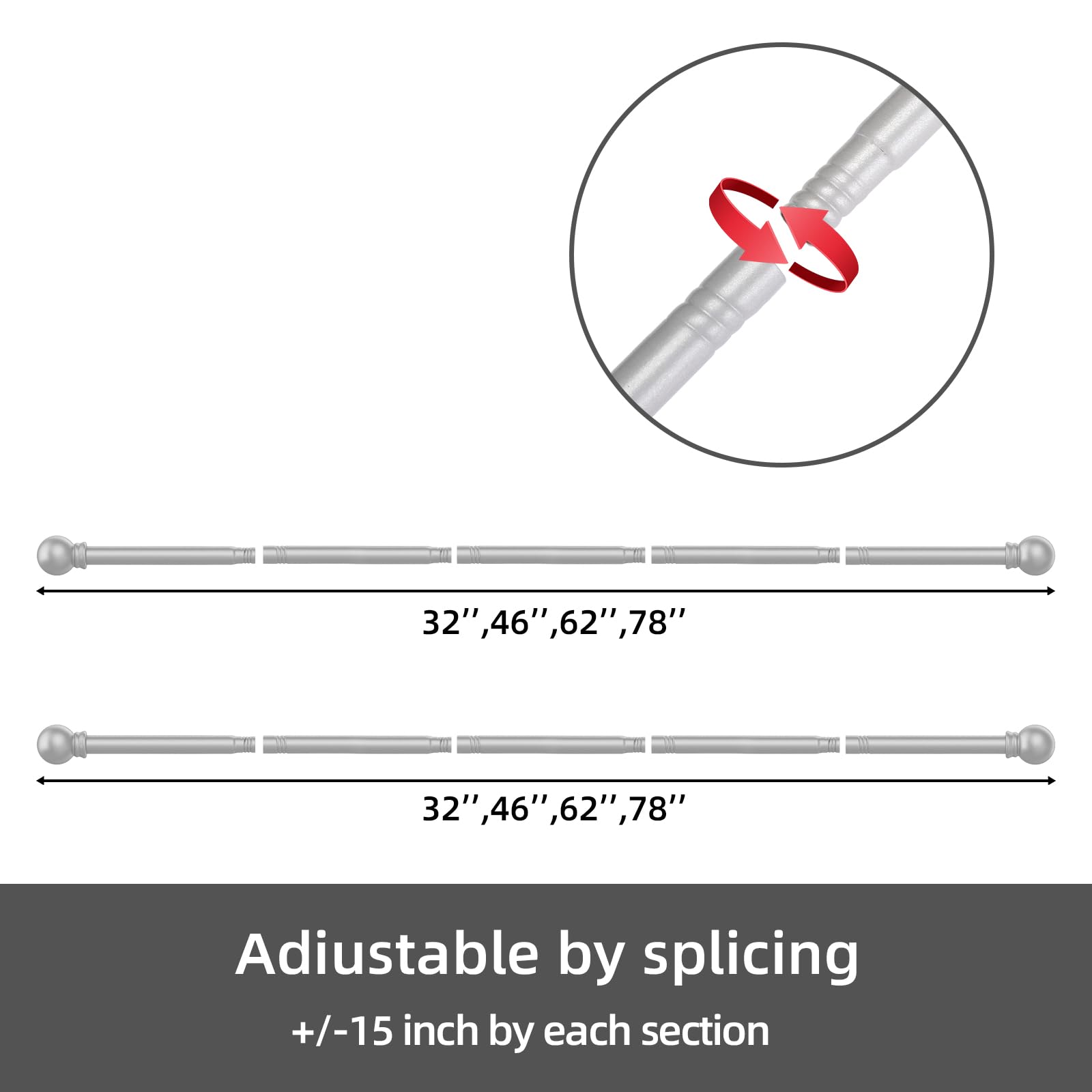 PAY ATTENTION: Adjust the curtain rod length by increasing the number of rods. Not Telescoping. The lengths available for this item are 32'', 46'', 62''and 78''
