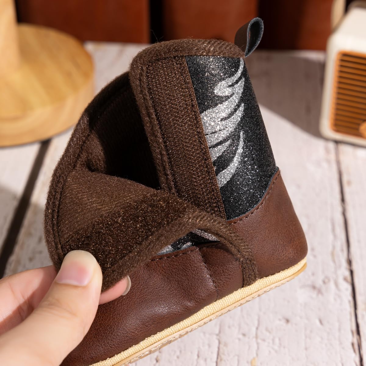 Soft Lining: Made of cotton and leather material. The long fluff inside are elastic and soft, will not bind the baby's movement. The material is non-irritating substances, let the baby away from chemical substances