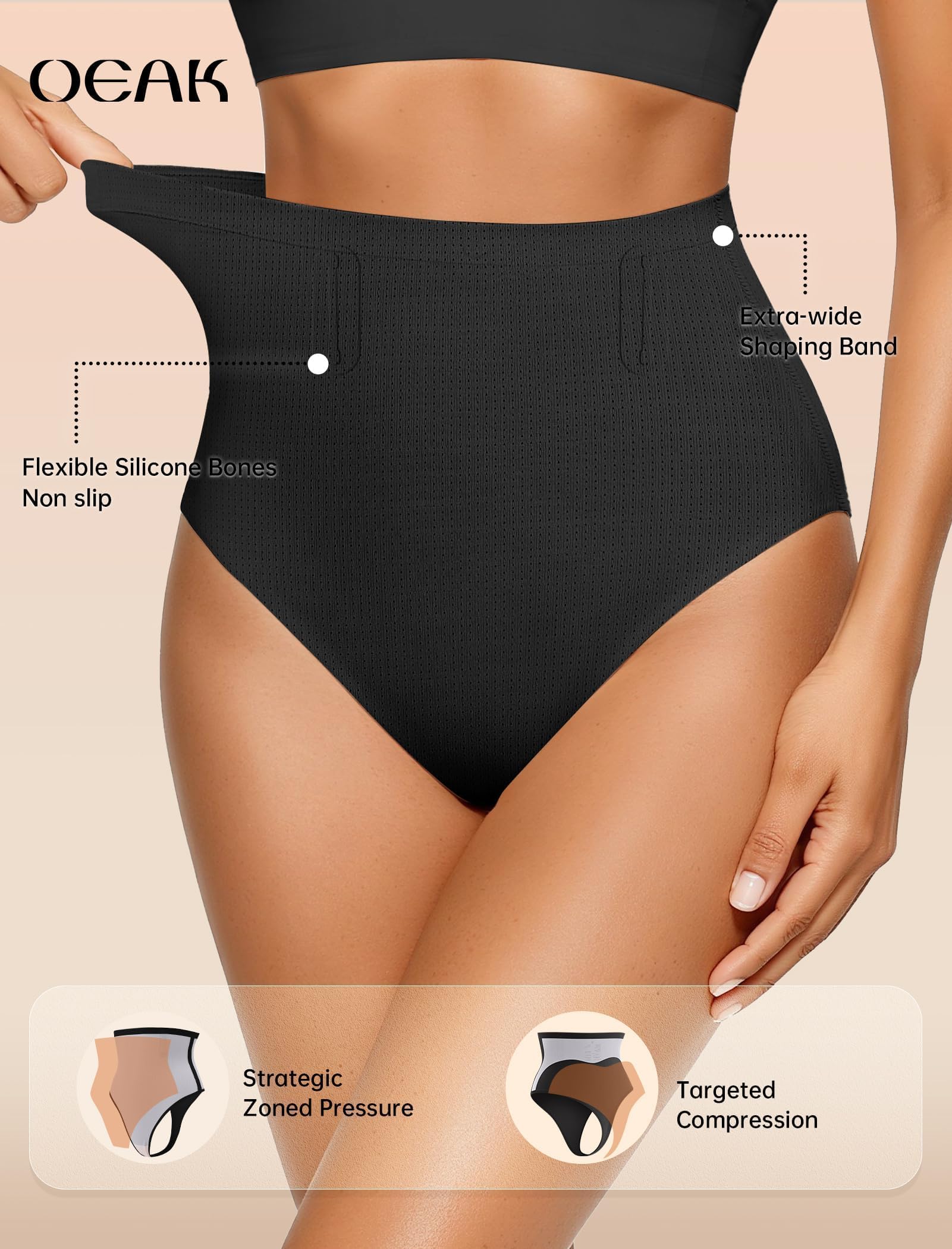 Seamless Tummy Control Shapewear Panties - Experience effortless shaping with OEAK Smoothing Shapewear Panties, designed with advanced zoned compression technology for targeted support. High-Waisted Shaping Panties engineered with scientific compression to target belly fat, sculpt a flawless waistline and lift your butt. Features 3D contour lifting design to enhance your curves.