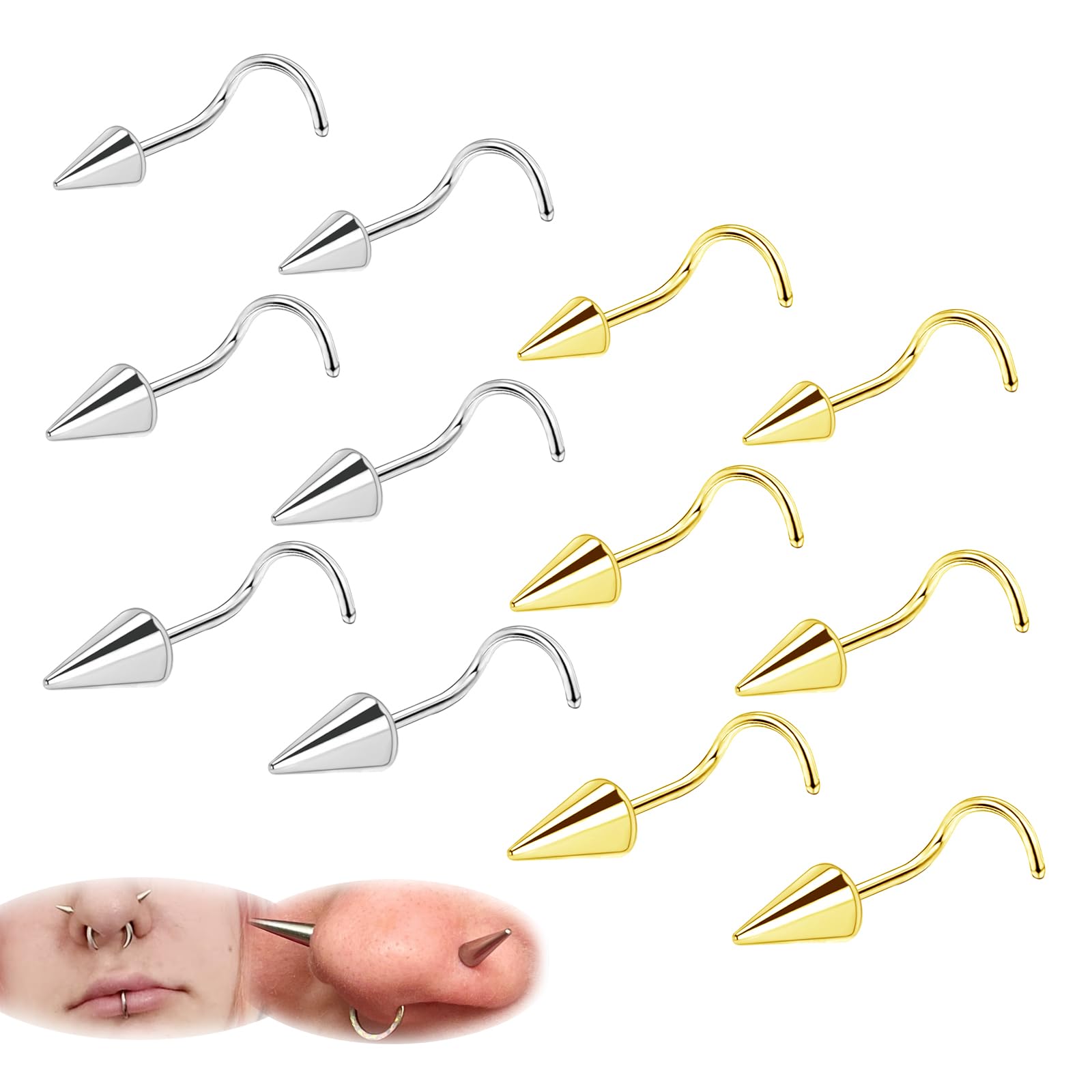 ❀Spike Nose Piercing Jewelry——You will receive 12 Pieces 20g corkscrew nose studs (6Pcs Gold and 6Pcs Sliver). The nostril piercing jewelry can be as gift for Families or Friends on Birthday, Graduation, Mothers' Day, Thanksgiving, Christmas, Valentine's Day, etc.
