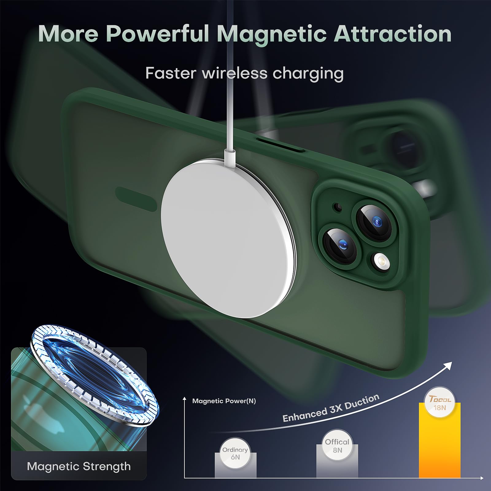 Upgraded Magnetic Charging: Upgraded for iPhone 13 Magnetic Case, better compatible with all for MagSafe chargers, providing a more stable, compatible, and faster charging experience. With 18N magnetic power. Only for iPhone 13 6.1 inch