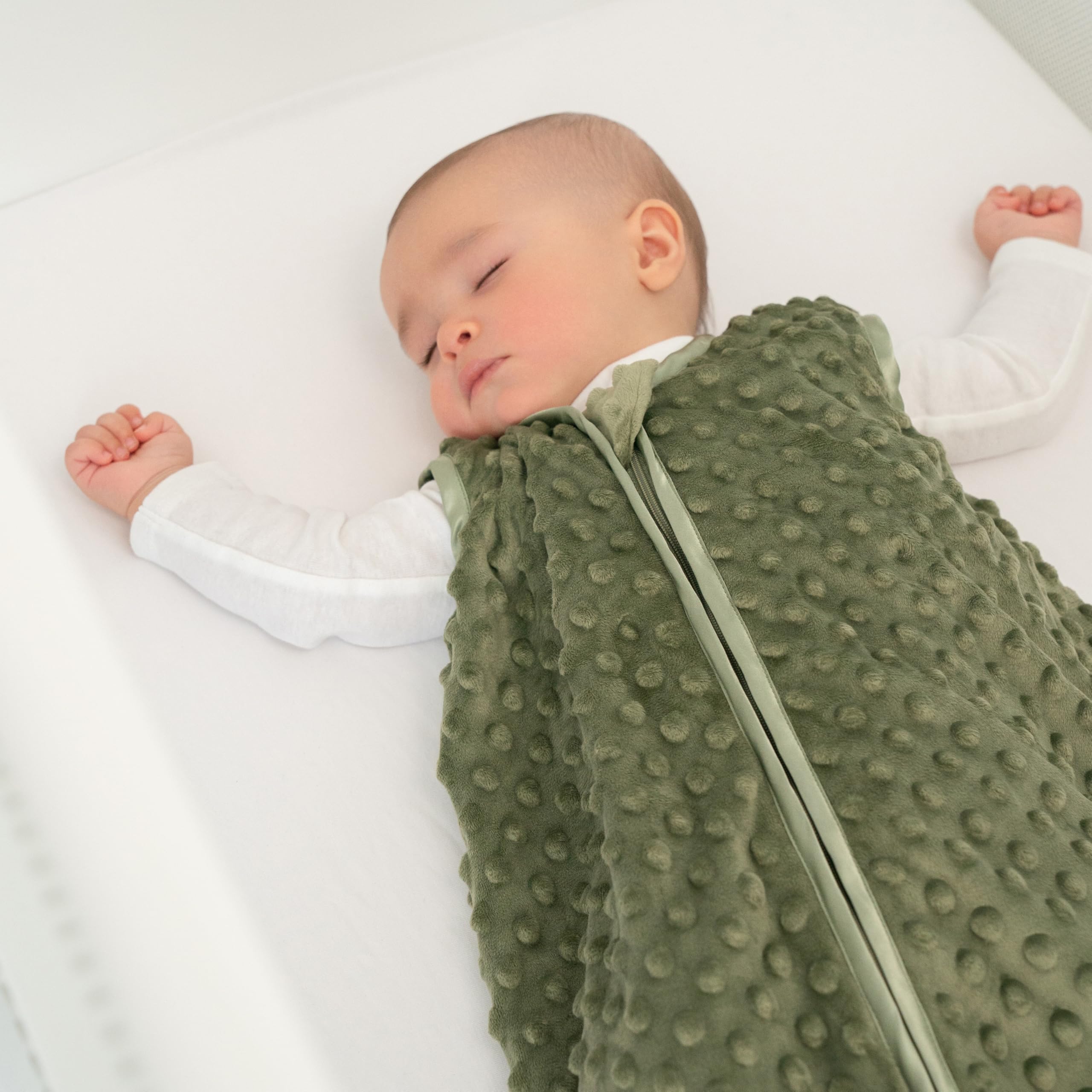ULTRA SOFT PLUSH FABRIC : Made from premium Plushy Dot Velboa fabric, this cozy baby wearable blanket delivers buttery-soft comfort and warmth. Gentle on delicate skin, it’s ideal for bedtime or naps and perfect for year-round use.