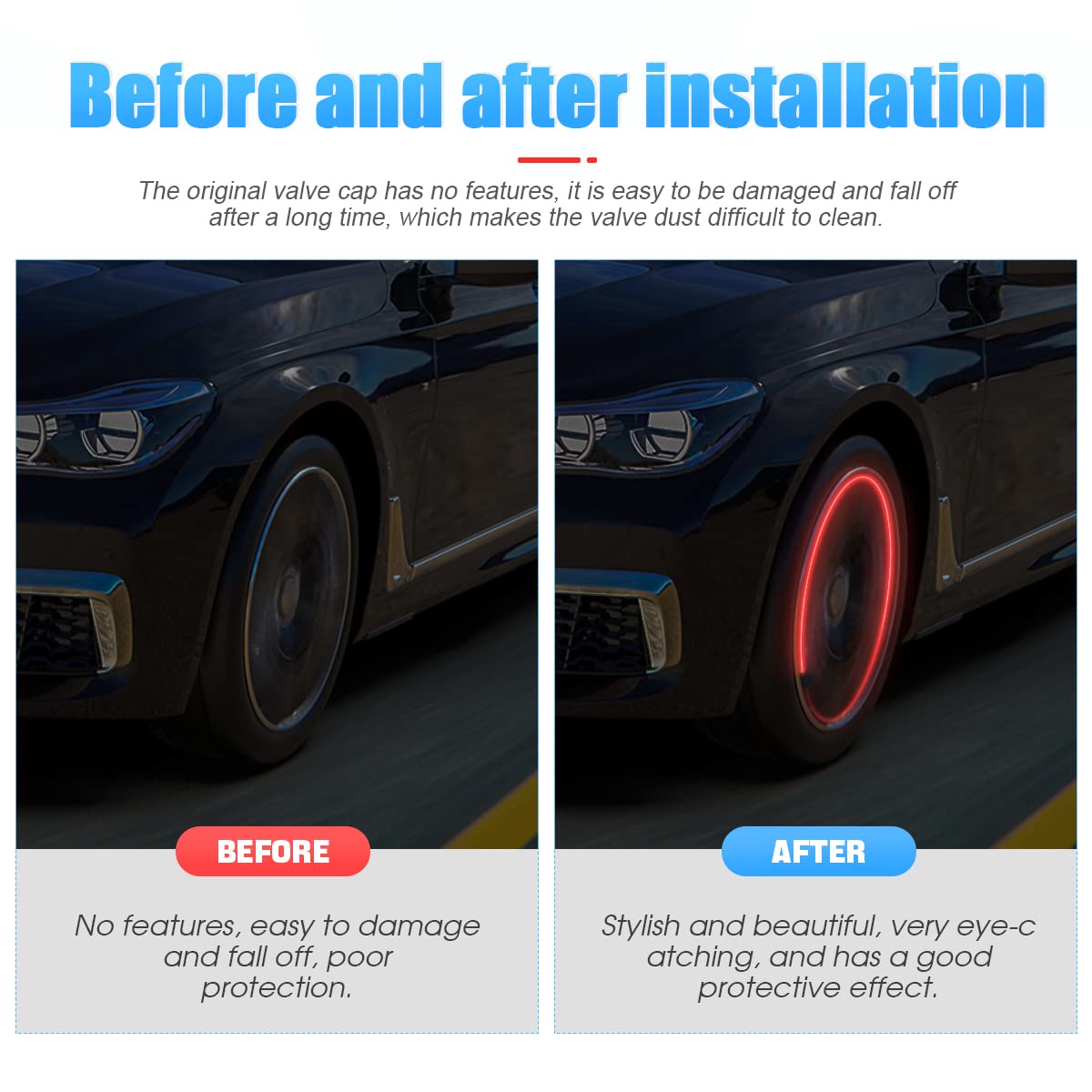 【Luminous Tire Valve Caps】: This luminous glow does not require electronic devices and emits light on its own. It won't be noticeable during the day, but it will get cool at night, and the darker the light, the more pronounced the glowing effect will be. There are six different colors for you to choose. It move with your wheel as you drive on the road, emitting a flowing light that adds personality and style to your car.