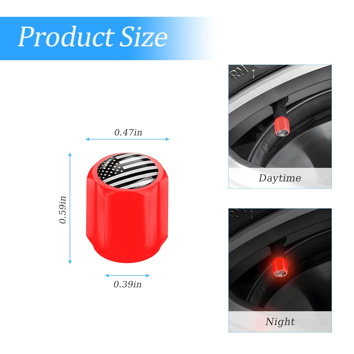 【USA Flag Design】: This car tire valve stem cap is designed with the black American flag logo, this tire cap looks clean and atmospheric, not only add style to your car, but also a unique way to show patriotism. It can show your support for government and love for freedom. All the attitudes represented by the American flag can be expressed through it. This tire stem cap can glow at night and make your car look more attractive.
