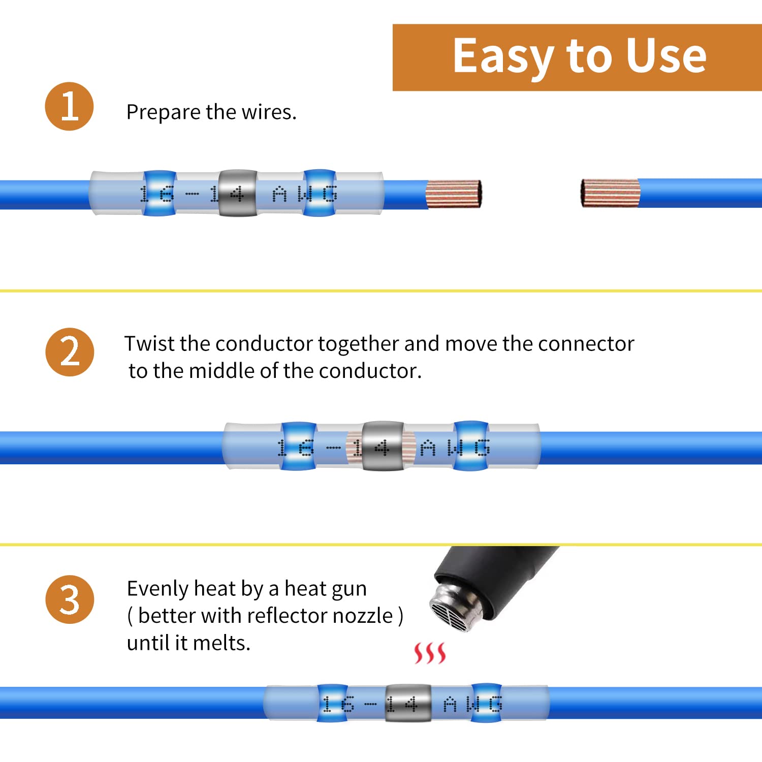 Easy to Use: Solder seal wire connectors can be connected with just a heat gun, no crimping tool or soldering machine is needed