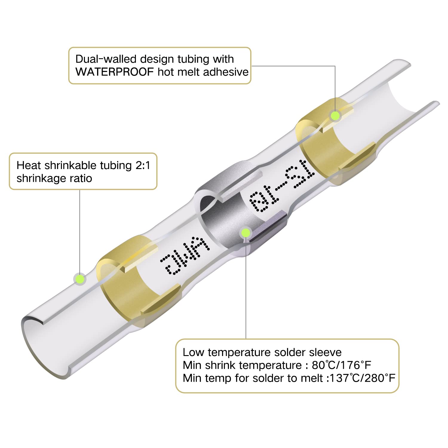 Waterproof and Insulating: Butt connectors with low heat solder and hot melt adhesive can produce a perfect seal, which helps to be better waterproof