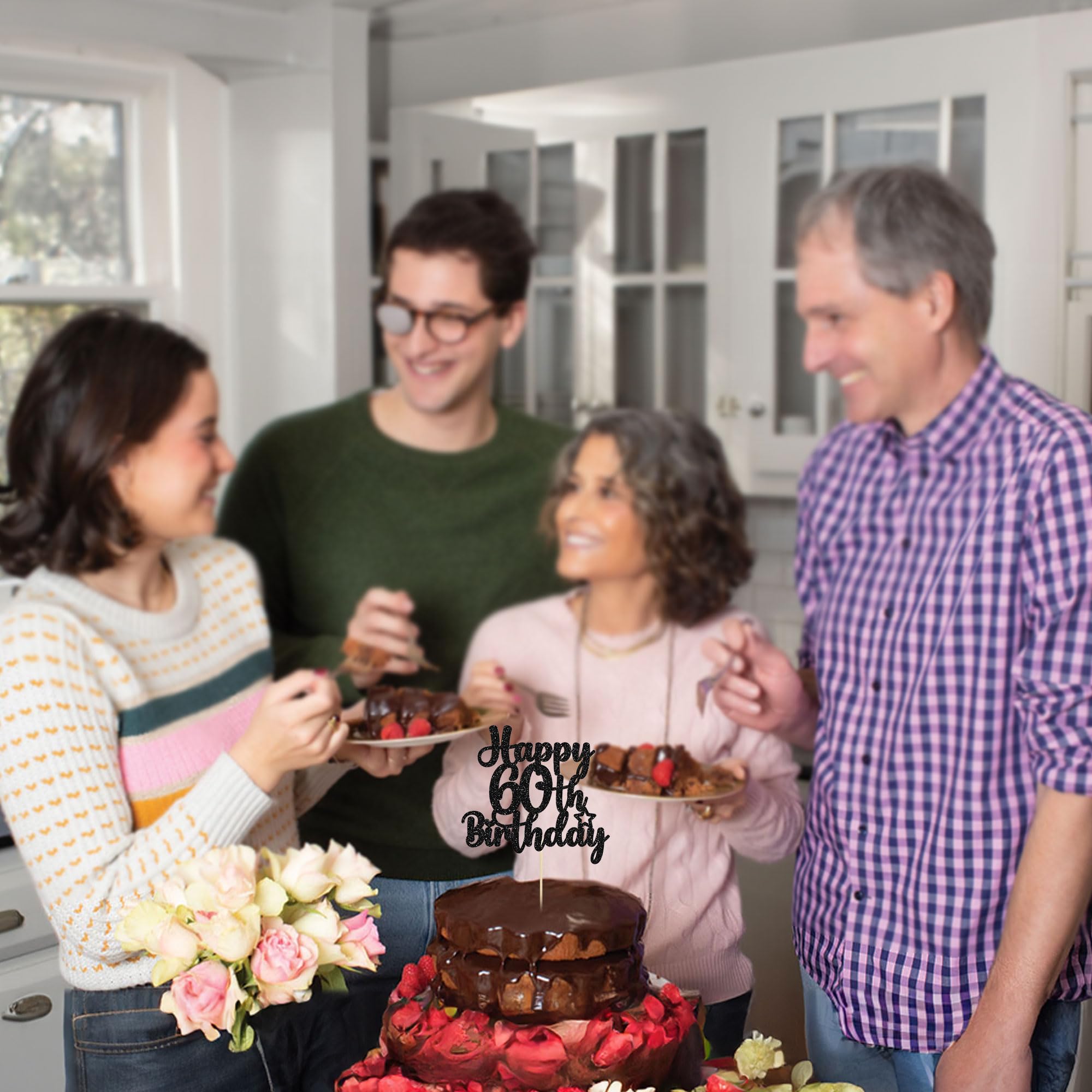 -This Happy 60th Birthday Cake Topper is so cute and good for happy 60th birthday theme party, cheers to 60 years theme party, 60 fabulous theme party, happy 60th birthday anniversary theme party cake decorations. They can make your cupcake more attractive and bring the fun to your party. You can also apply them for ice cream, fruits, cookies and other desserts.