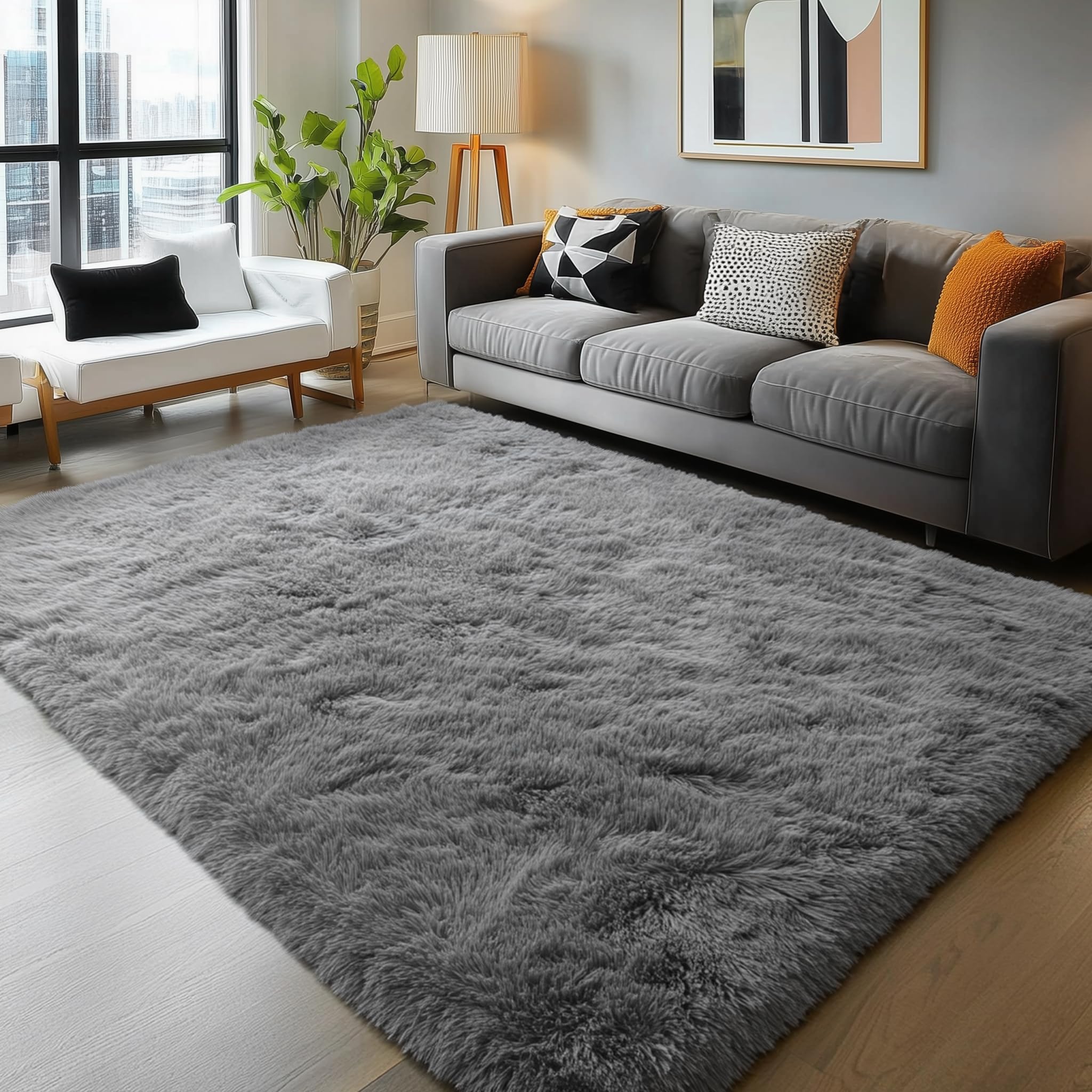 γ PAGISOFE Modern Area Rug γThe fluffy rug provides soft and comfortable touch which makes you feel like walking and lying on the clouds.Your pets and kids will love to move around on this carpet, which has a 30% thicker foam pad and a 1.5-inch pile surface. The shag rug are perfect addition to your favorite space.The high pile provides a soft and comfortable touch, whether you are standing or sitting on this large area rug, you can relieve the fatigue of your day.