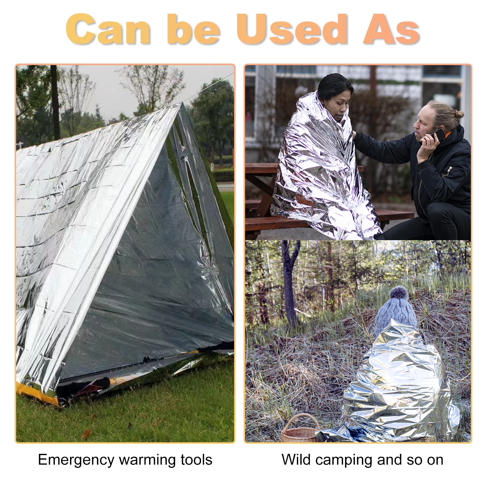 Emergency Blanket: This is crucial in cold environments, such as in the wilderness during cold nights or in case of exposure to cold weather after an accident. It helps prevent hypothermia by reducing the loss of body heat and maintaining a relatively stable body temperature. And In emergency situations, especially in areas with poor visibility or during the night, the shiny surface of the blanket can be used to attract the attention of rescuers.