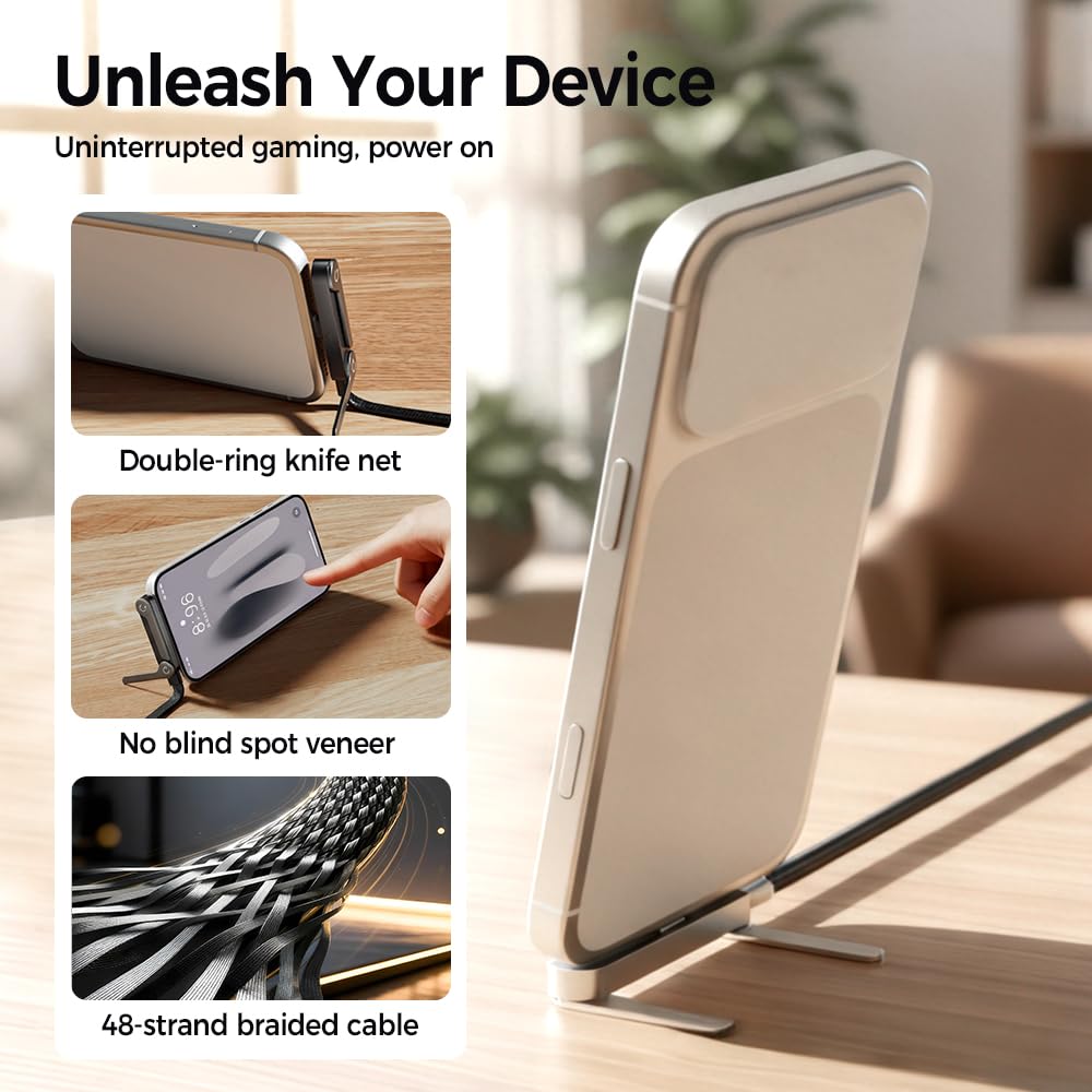 2-in-1 Space Revolution: 2-in-1 invisible holder charger cable eliminates stand clutter! Sideways phone charger props devices horizontally—watch videos hands-free while charging