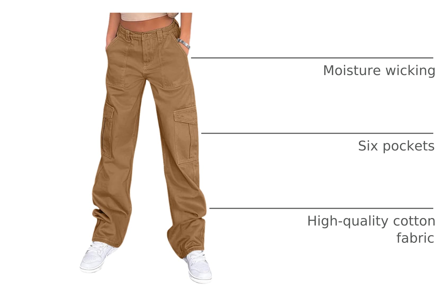 Features: Cargo pants with 6 pockets, stretch elastic high waist, relaxed fit, zipper and button closure, hip hop joggers sweatpants, wide leg cargo pants, Y2K style, hippie outfits, and the loose fit is ideal for casual or sporty.