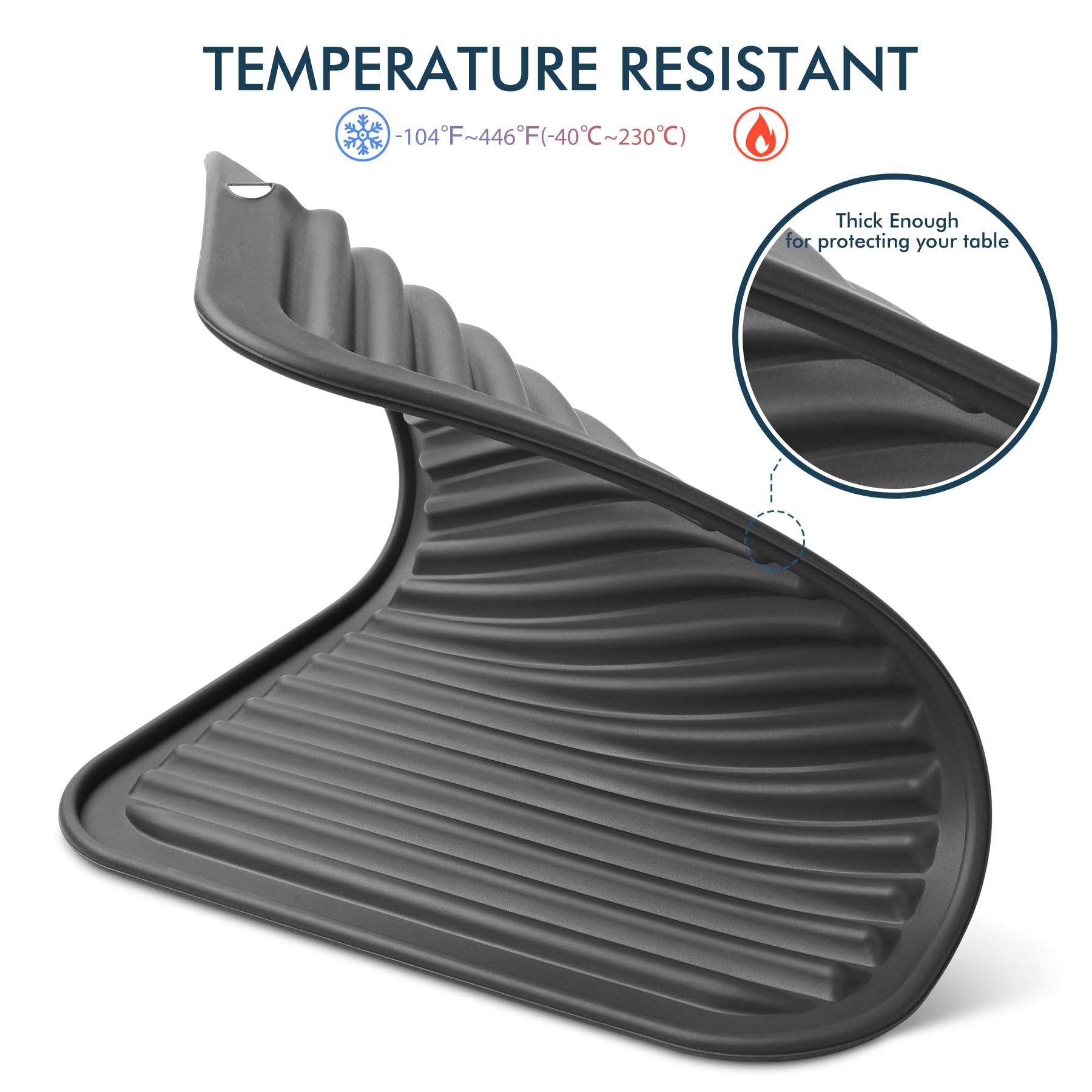HIGH HEAT RESISTANT: Temperature 104℉~446℉(-40℃~230℃), can rest below hot pots and saucepans for long periods of time without melting or otherwise becoming damaged, protecting your kitchen counter avoid scalding.