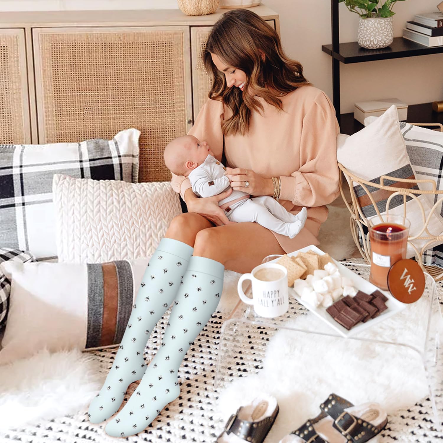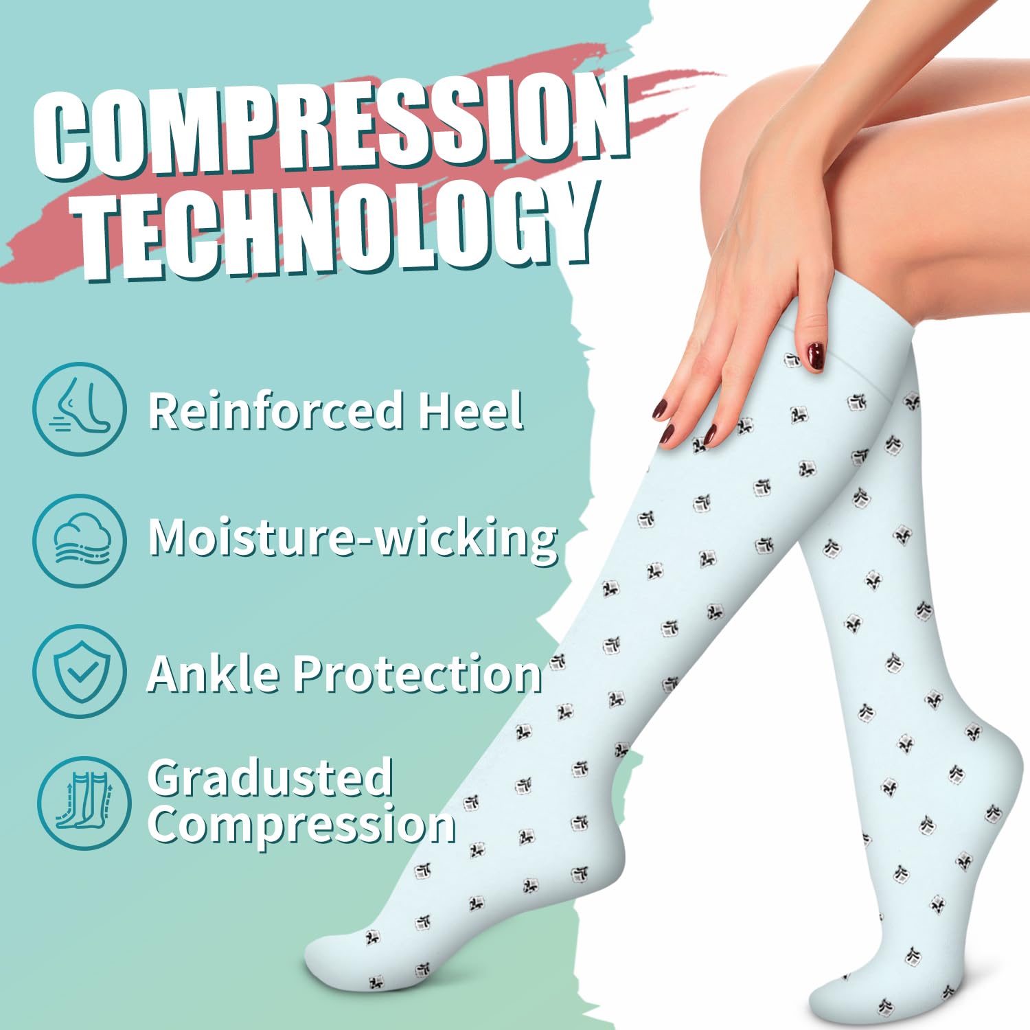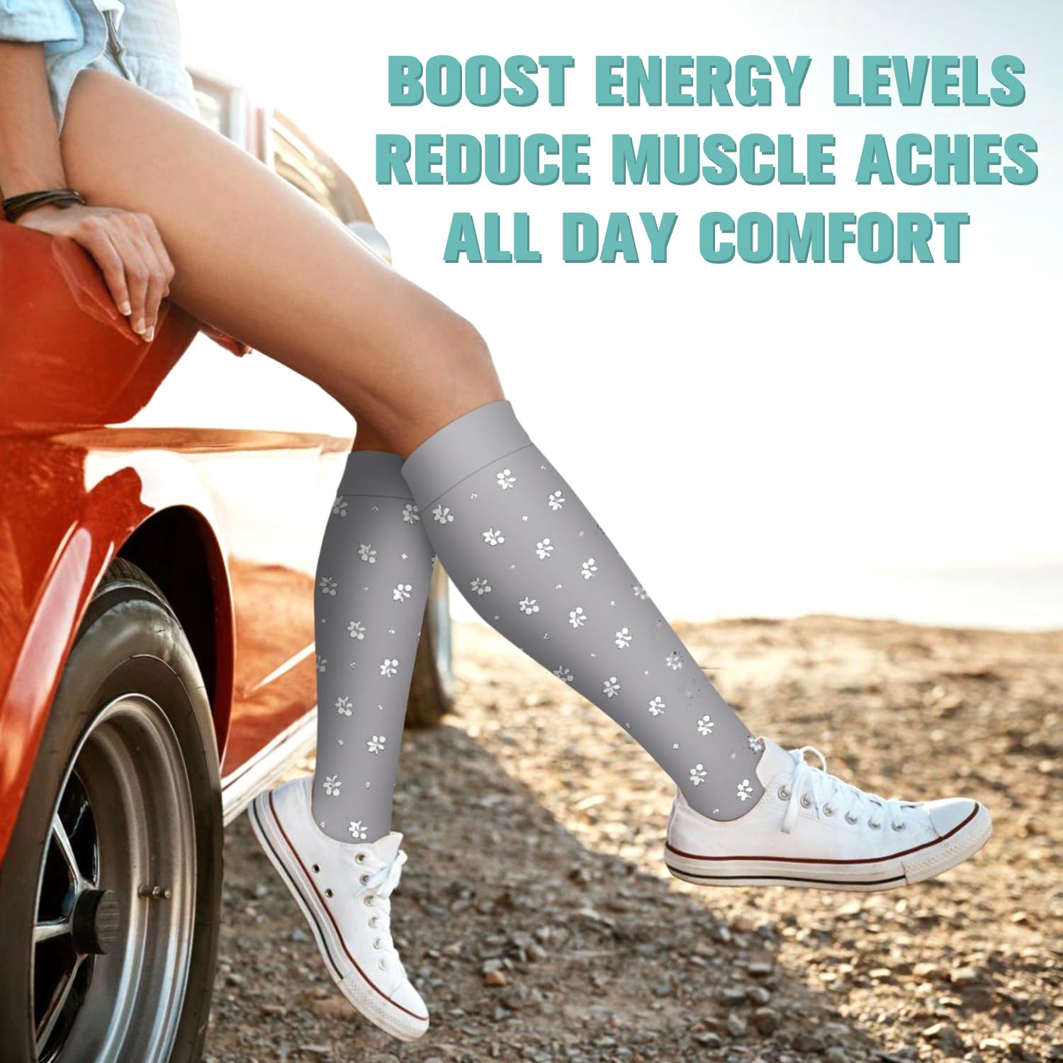 UPGRADE YOUR COMPRESSION SOCKS DRAWER! - With all the tasks of work and family (and of life itself!) we may forget to pay attention to and maintain the health of our legs. Our compression socks are designed to help increase circulation, improve leg and foot comfort, and reduce soreness and swelling, increase energy, All day comfort.Great for long periods of sitting or standing, endurance sports, flying and travel, post-workout recovery, pregnancy, and spider & varicose veins.