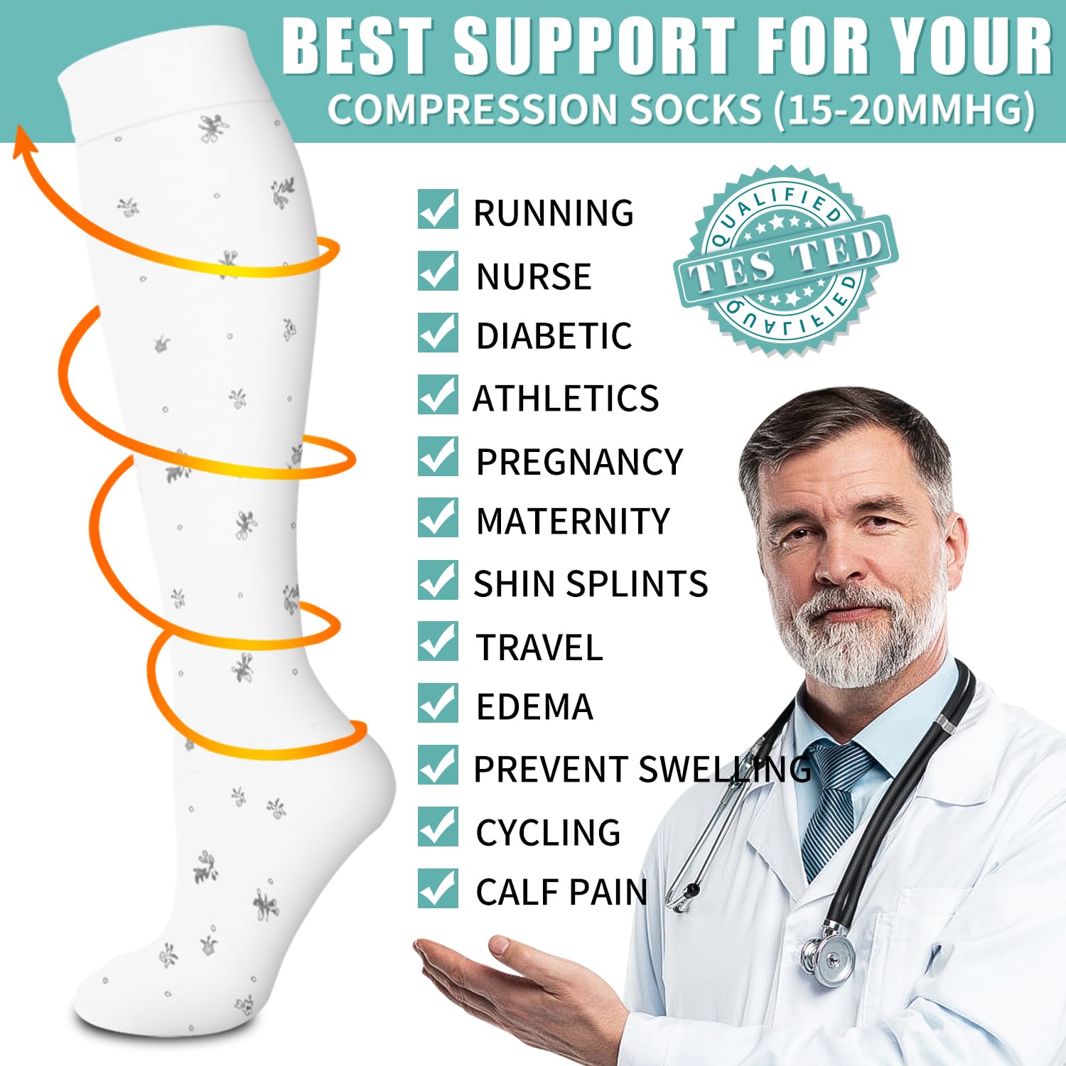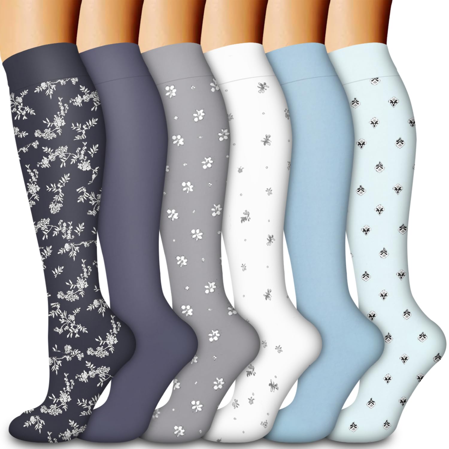 VALUE PACK - Each pack includes 6 pairs of compression socks. Our design of comfort and style comes at a very affordable price in comparison. There are available in different fabrics and colors. They are discreet and look like the ordinary socks you have already wear to work. Our socks are universally suitable for all work.Whether you are an athlete,teacher,flight crew,receptionist, office worker, pregnant, elderly ,they'll work for you as you work for yourself and your family.