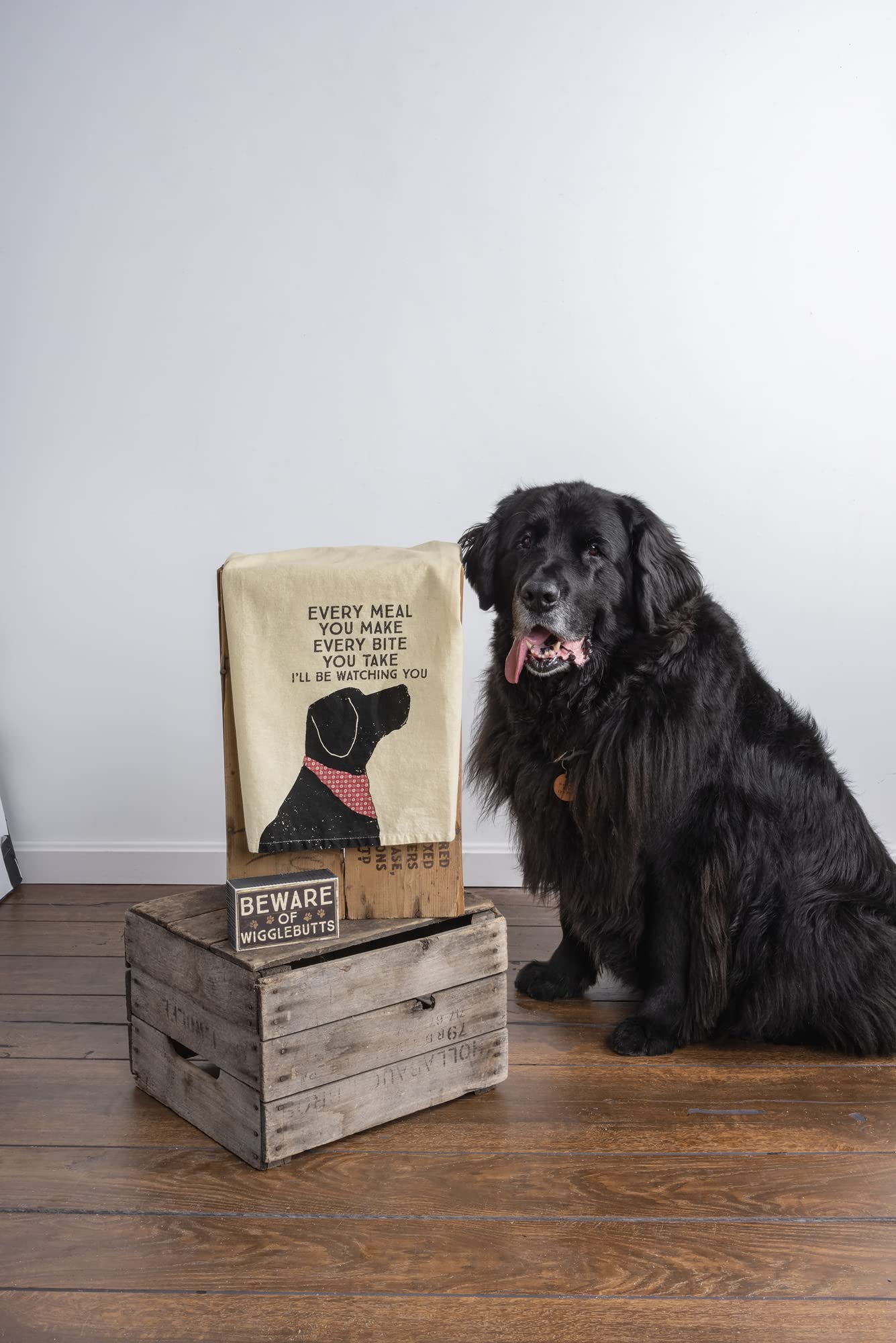 Bring a touch of humor to your kitchen decor with the Primitives by Kathy's cotton dish towel. This 28" x 28" bath towel is not just a practical addition to your kitchen set, but also a fun piece that will surely put a smile on your face. The towel features a charming illustration of a dog with a bandana, making it an ideal piece for cat and dog lovers. The phrase "Every meal you make, every bite you take, I'll be watching you" is printed on the towel, adding a funny twist to your everyday kitchen routine. Made from strong cotton material, this towel is not only decorative but also highly functional. It can be used as a hand towel, tea towel, or dish towel. The high-quality fabric ensures excellent absorbency, making it suitable for drying dishes or wiping your hands. This towel is also a great gift idea for housewarming parties, cat and dog moms, or anyone who appreciates a touch of humor in their home. The Primitives by Kathy cotton dish towel is a fun and practical addition to any kitchen, making every meal preparation a bit more enjoyable.