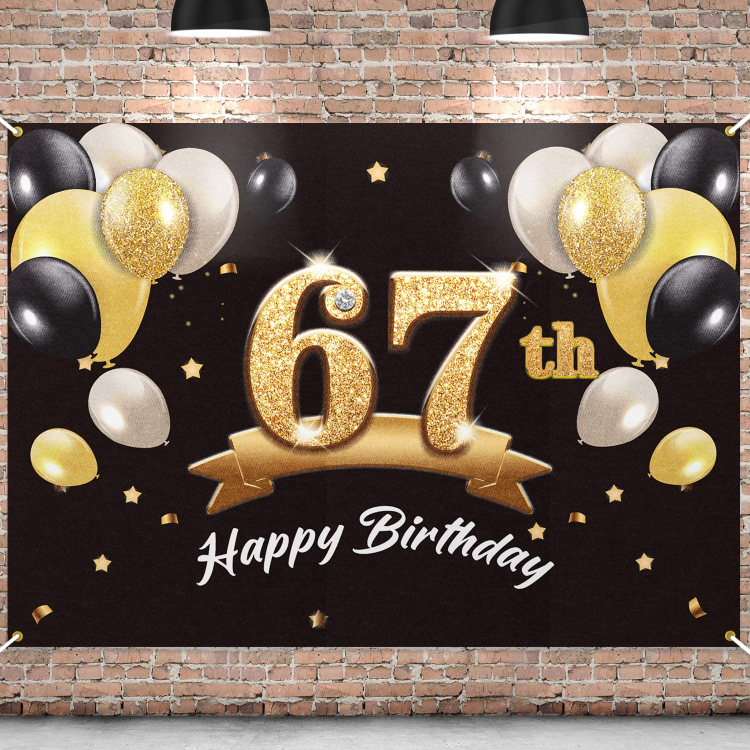 YOU WILL GET One birthday backdrop(3.9 x 5.9 ft) Strings for hanging PRODUCT DETAILS Lightweight material, having 4 holes with gold frames at corners, which makes it very easy and convenient to hang it up. PERFECT SIZE Our backdrop can play a good role in photo booth or dessert table decorations because of its appropriate size GREAT DECOR With the high definition printing technology, the backdrop will be a light in your birthday party and leave a good memory for everybody.