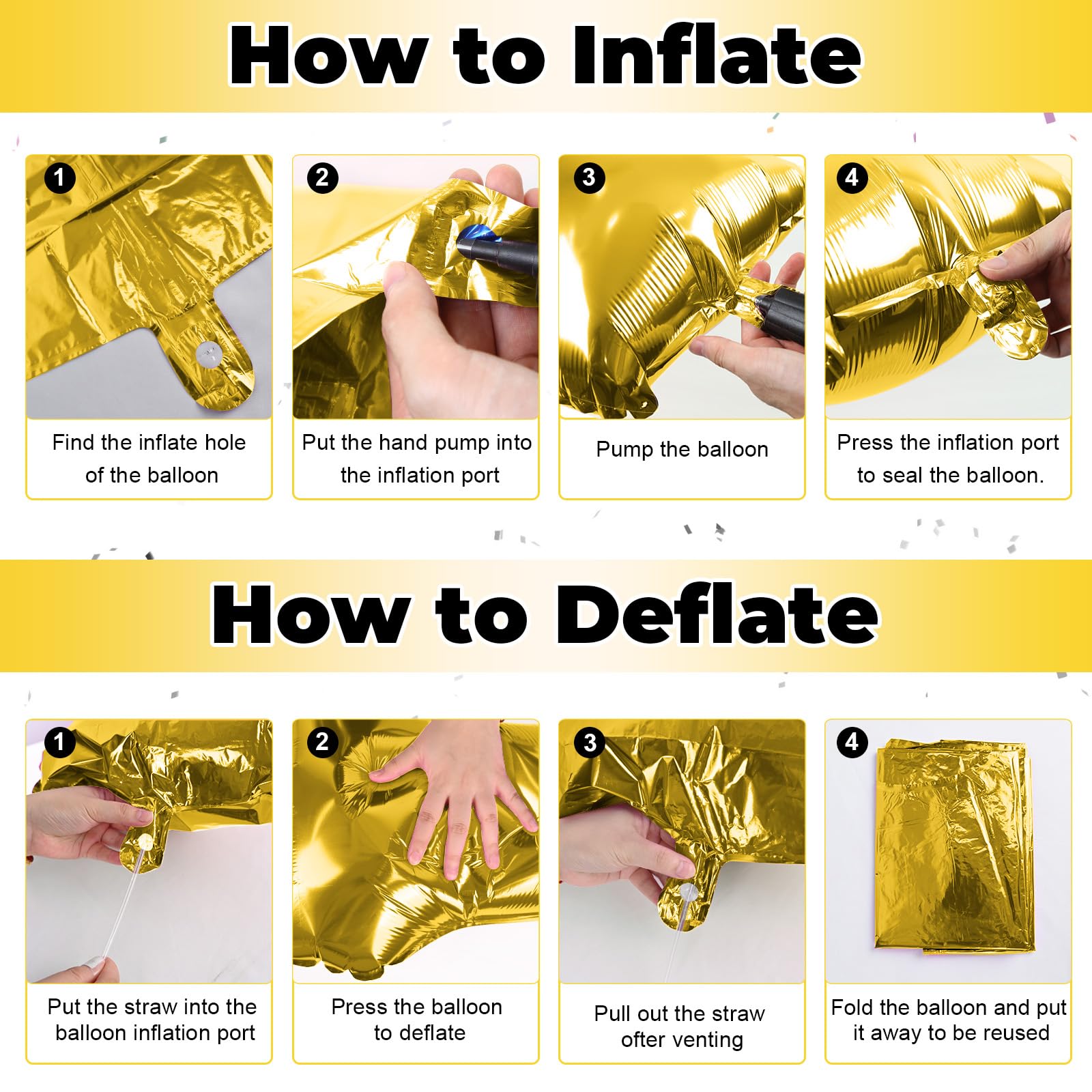 Repeated Use: The big gold housewarming party decoration kit contains a straw that can be used to deflate the HOME foil balloon, simply insert the straw into the valve and press gently until the gas is completely expelled. After use, it can be folded and stored for reuse.