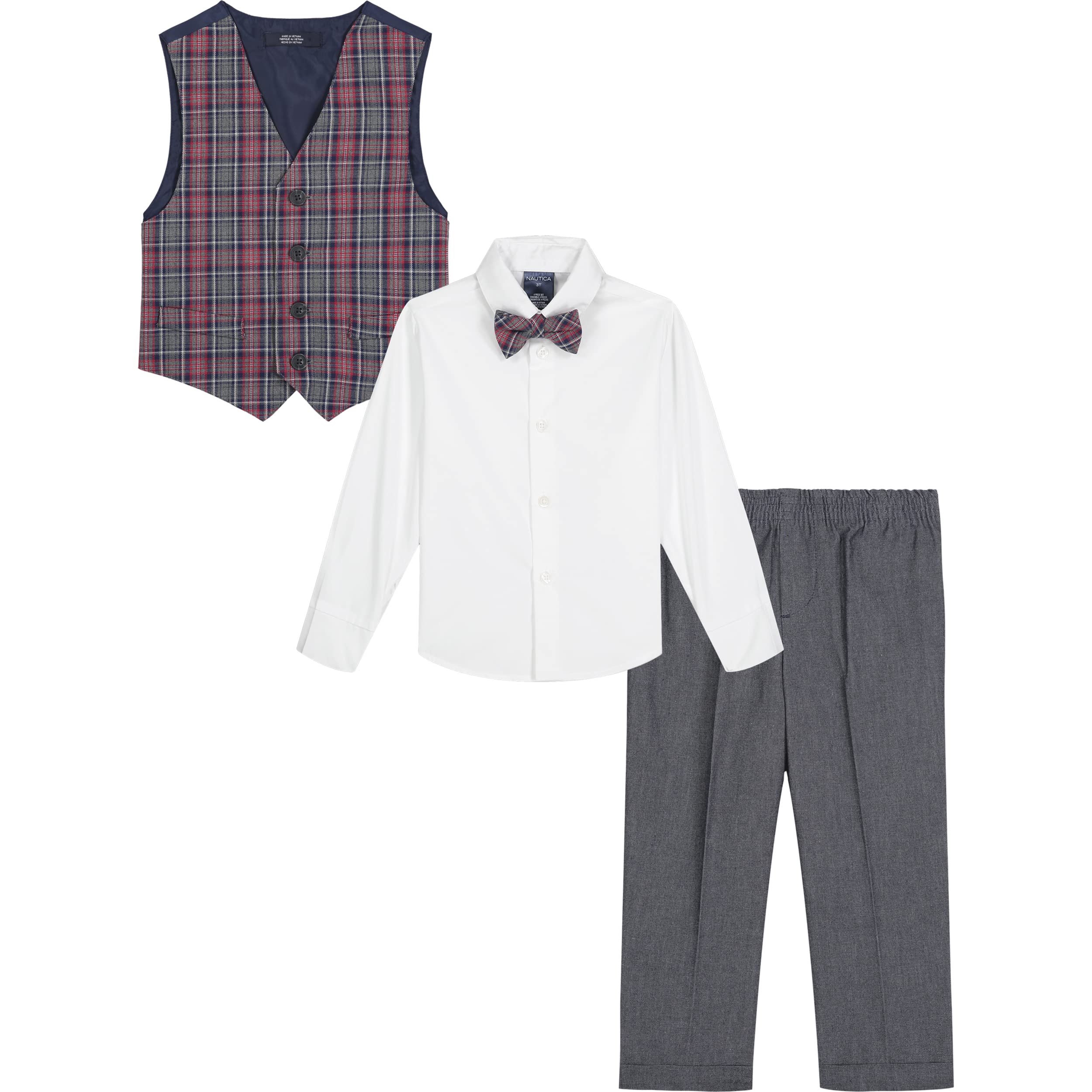 Handsomely patterned, this matching tartan vest and tie with pants set from Nautica is well-suited for occasion-ready dressing.
