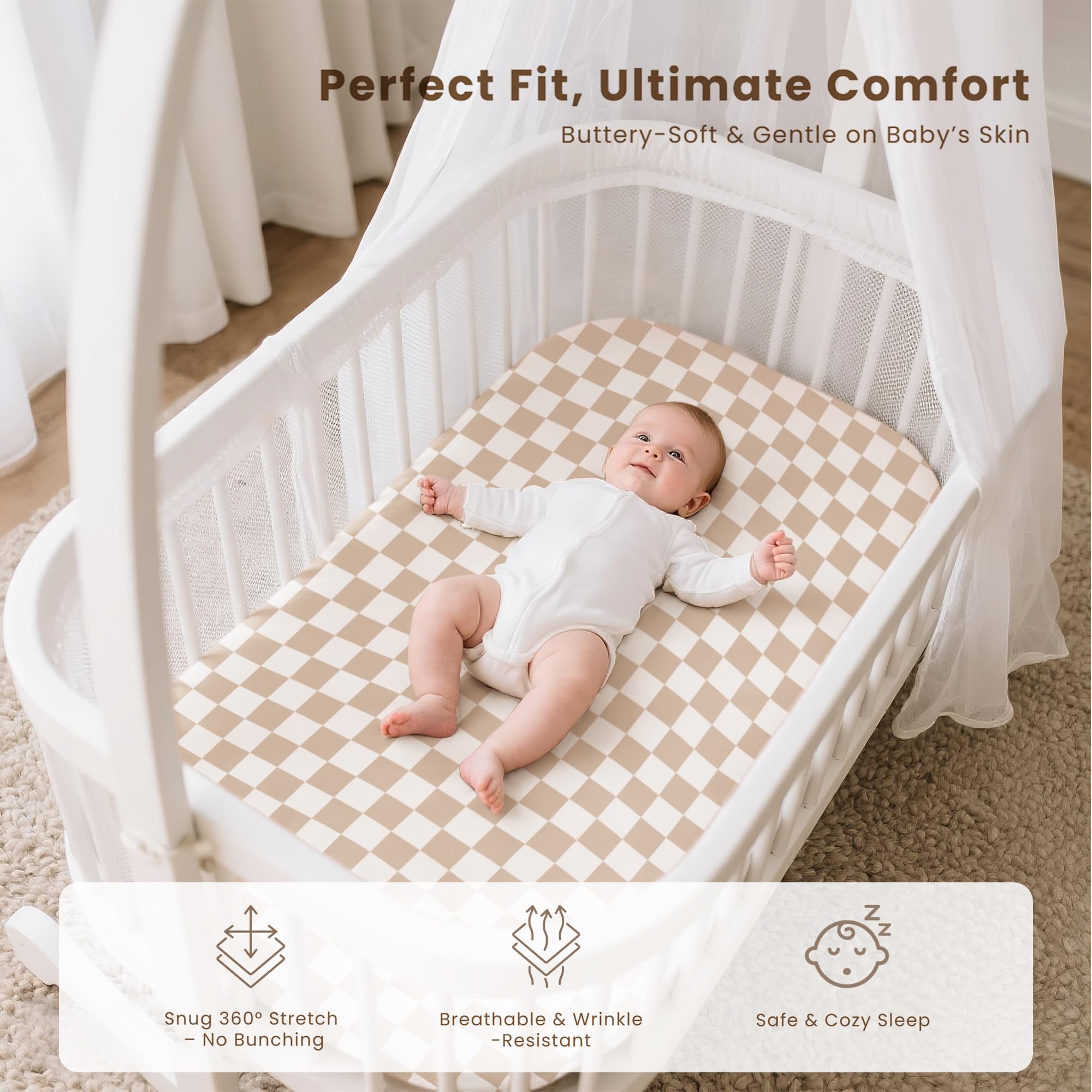 Easy To Care: Machine washable and durable, these bassinet fitted sheets maintain their softness and shape after every wash. Built to last, they ensure a fresh, clean sleep environment for your baby with long-lasting durability