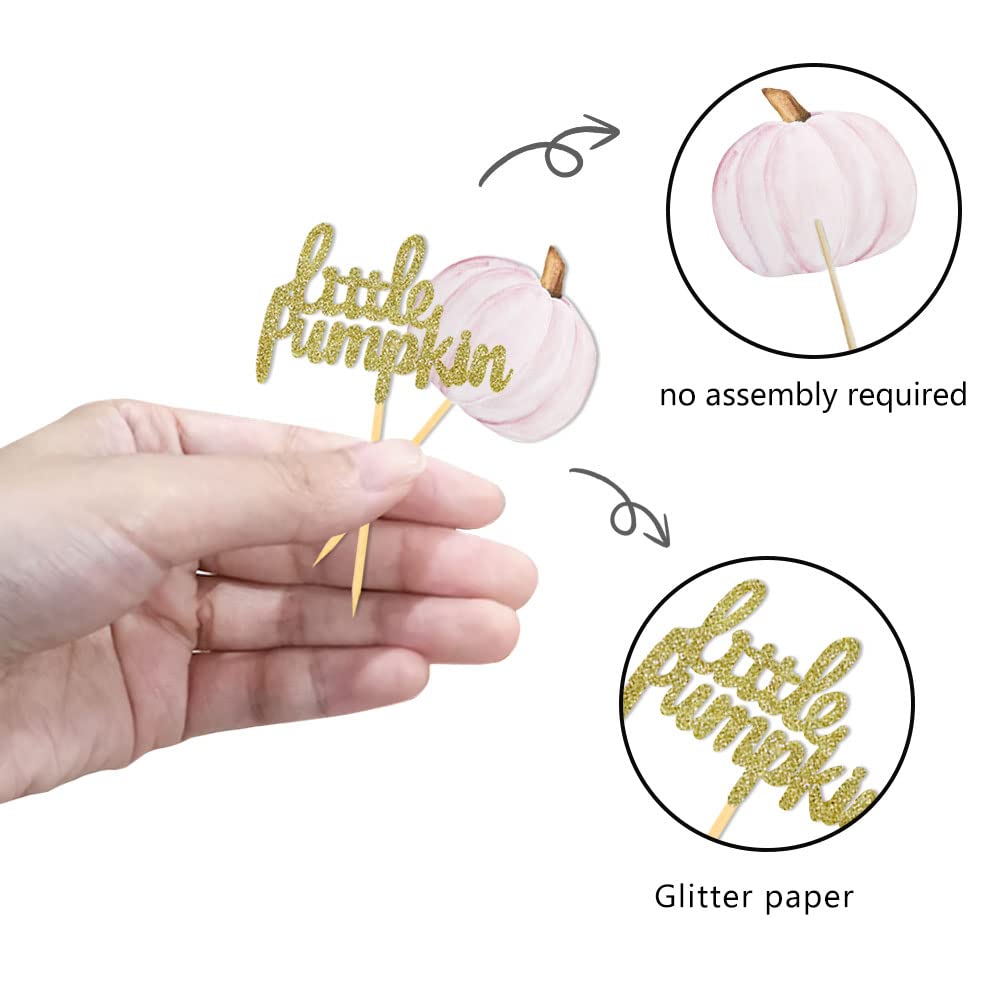 What you will get: Package included total of 24,enough quantity for your use. 12 Pcs pink pumpkin cupcake toppers, 12 Pcs little pumpkin cupcake toppers.