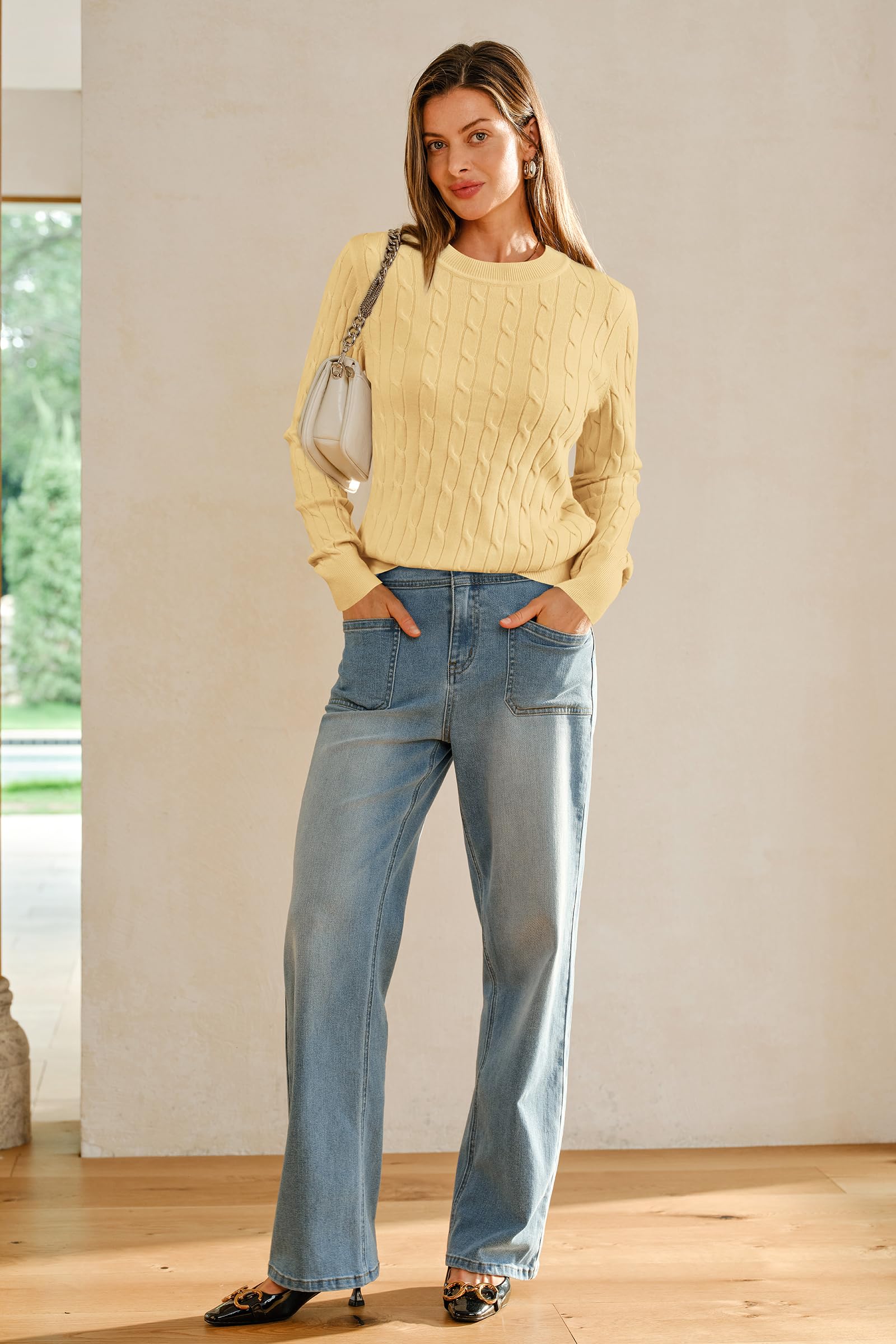 Features: Women's Classic Cable Knit Tops / Long Sleeve / Crew Neck / Loose Fit / Winter Layering / Elasticated Hem / Pullover Sweater