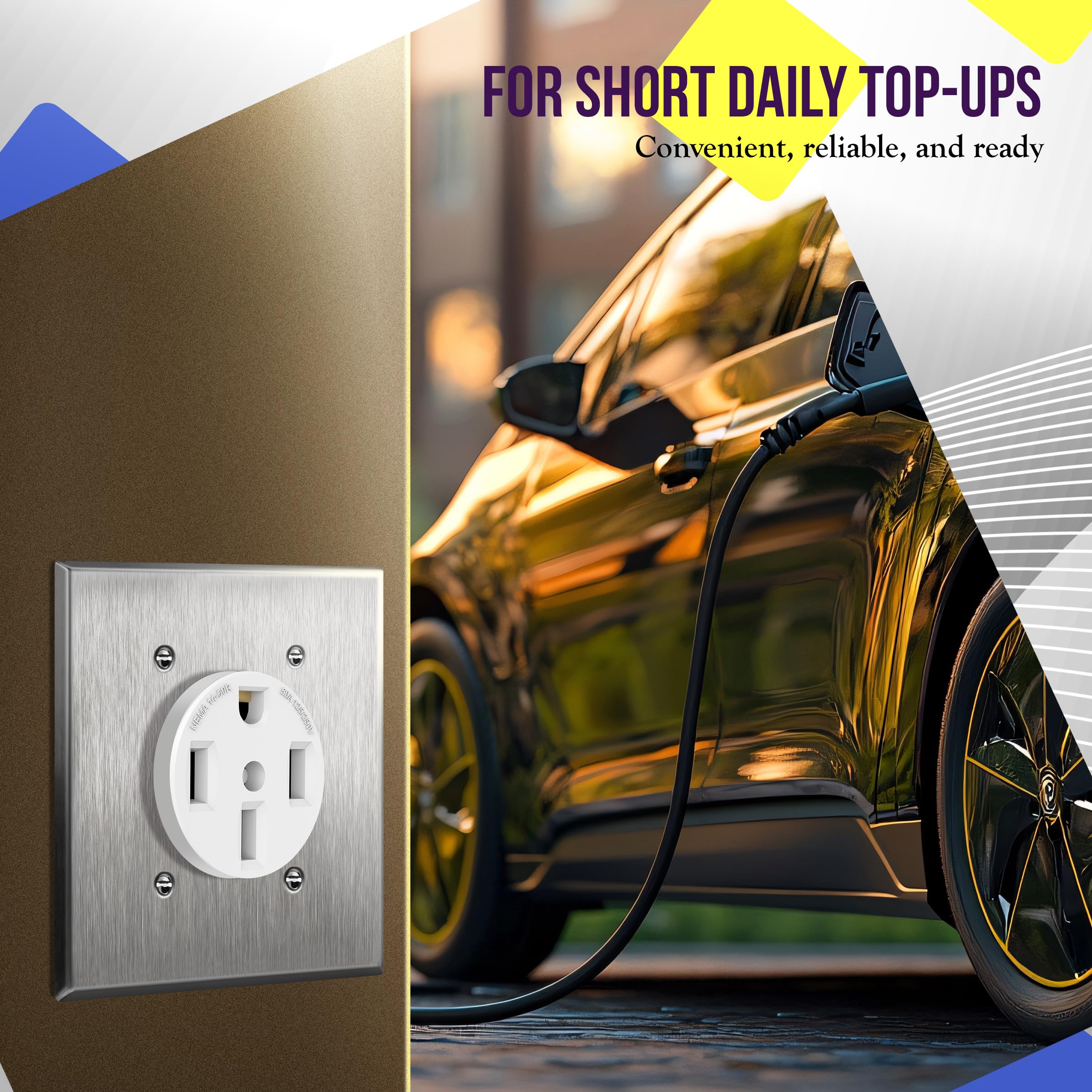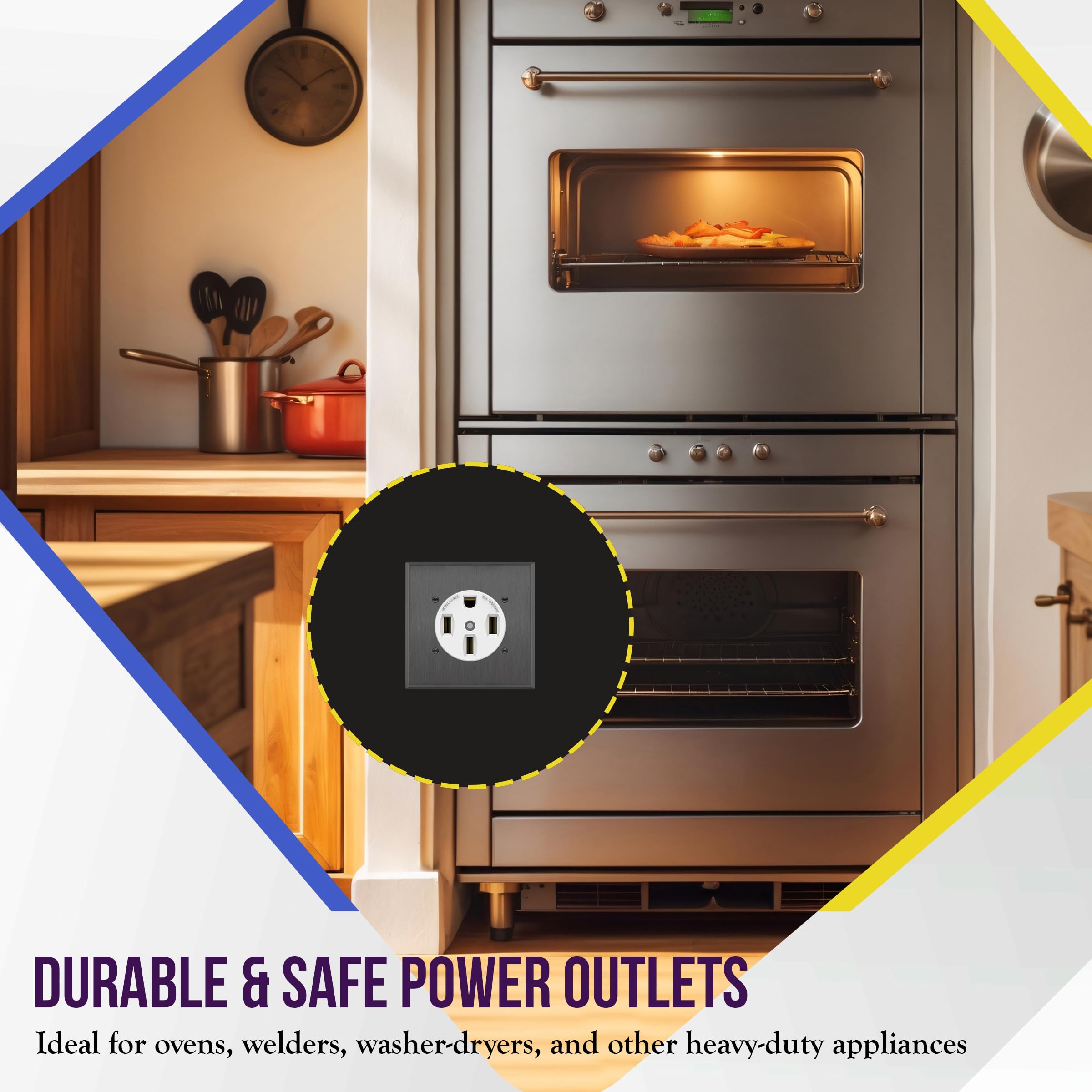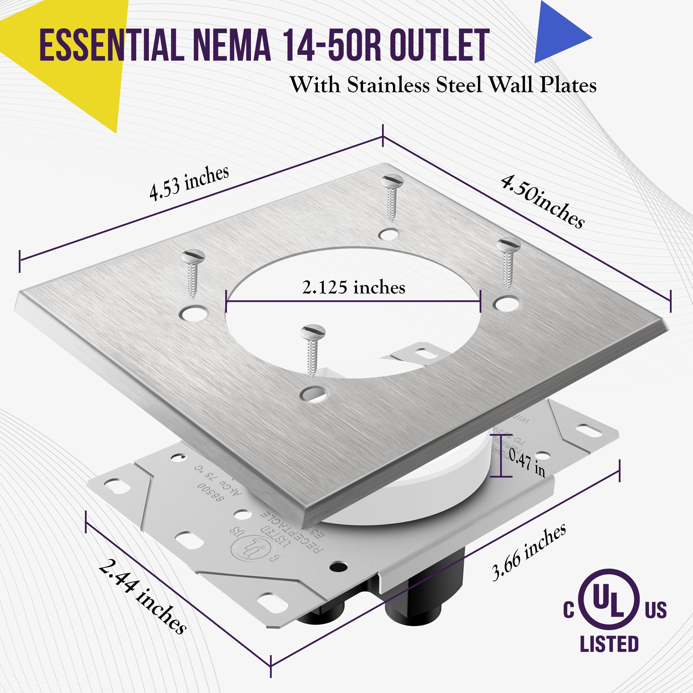NEMA 14-50R: assures compatibility with (EV) Electric Vehicles (please see your manufacturer's manual for compatibility) as well as electrical dryers, RV's, Ranges, welders and a broad range of other applications. Fits all 1-gang wallplates. We highly recommend the installation of this dryer outlet with a 2 gang wall plate to make the installation process easier with more space.