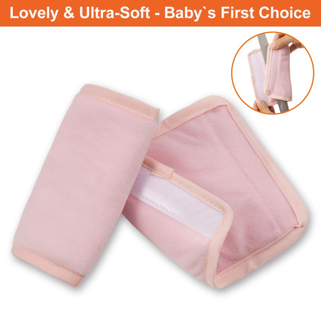 Superior Softness and Lovely: Made from super soft velvet touch fabric, the soft wraps belt covers provide additional comfort to prevent rubbing and irritation from car seat straps. Kids will feel much more comfortable with the soft foam pads, we pay more attention to design nice and comfortable baby shoulder pads for your kids