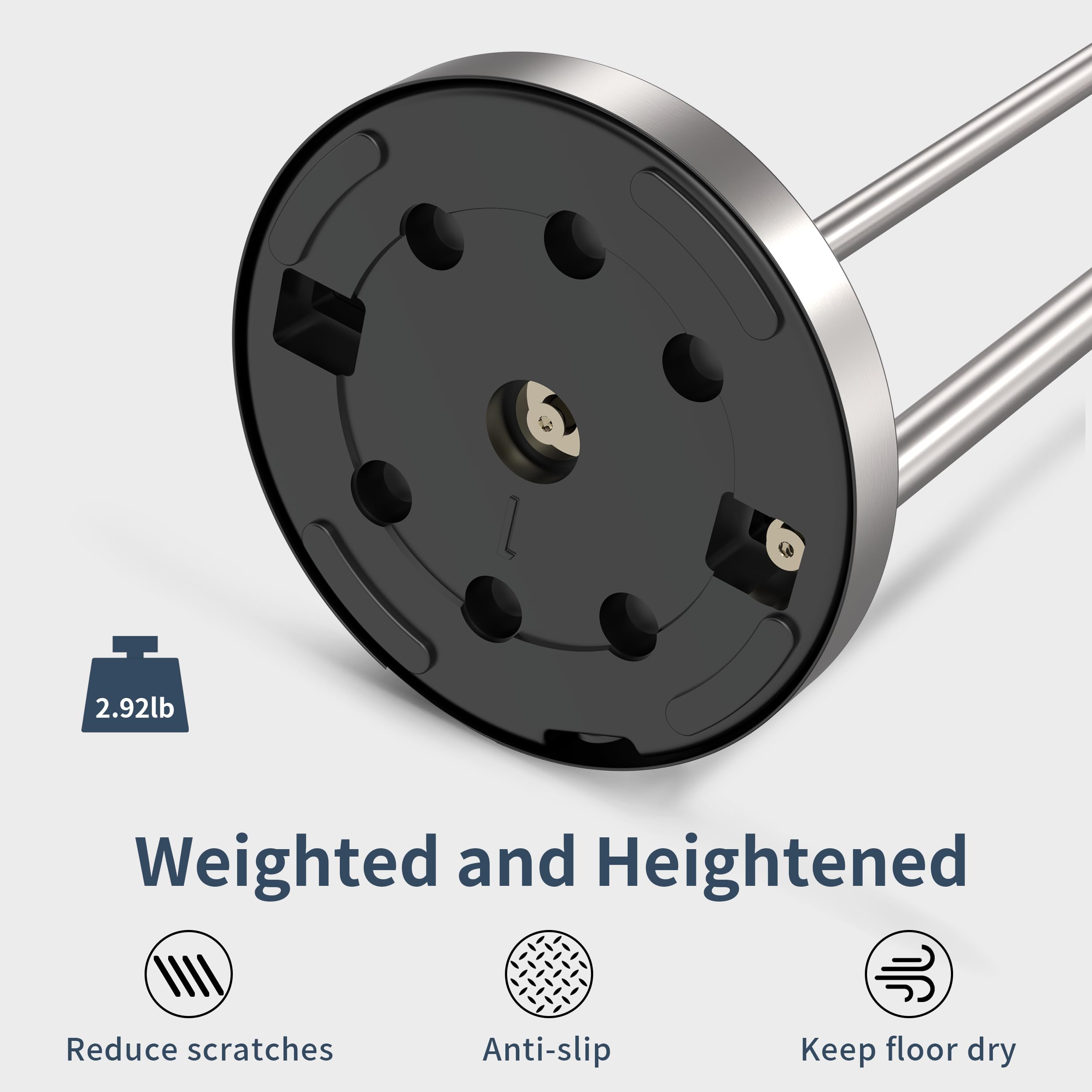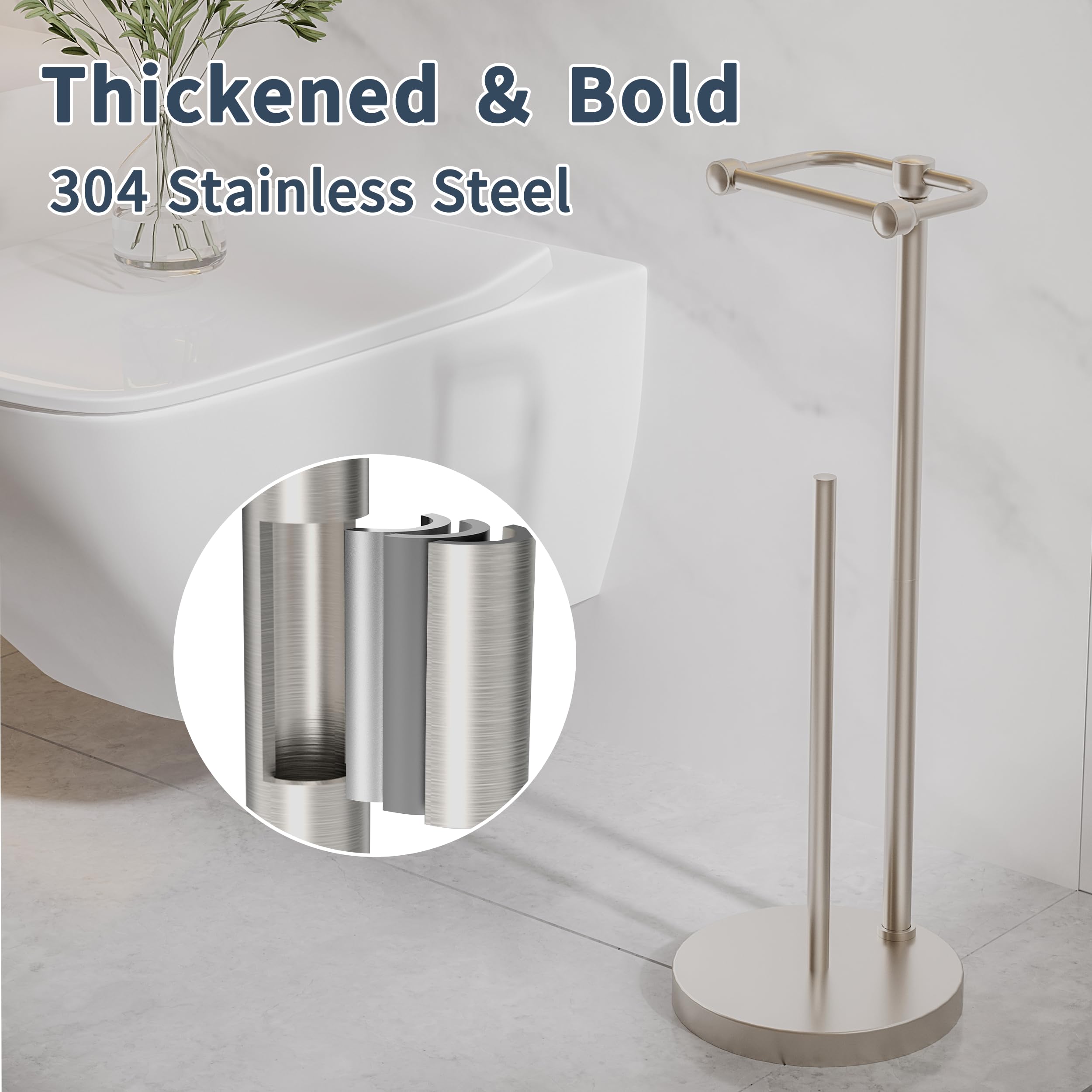 [Enhance Base] Bathroom toilet paper holder has a weighted and heightened base, which allows paper towel holder to maintain stability, prevent toilet paper holder free standing from scratching the ground, while keeping the ground at the bottom of stand alone toilet paper holder dry