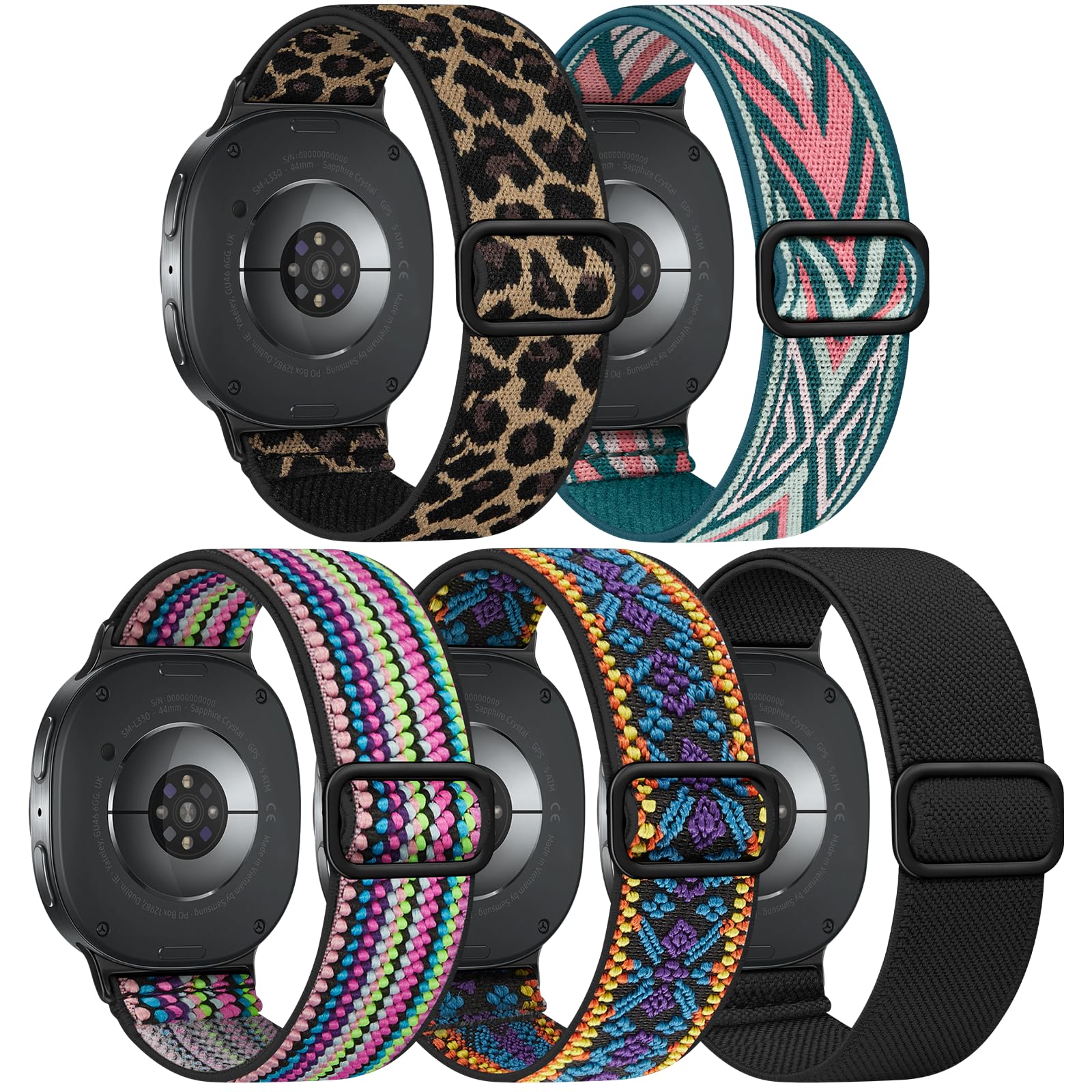 【Stretchy & Adjustable】The galaxy watch 4/galaxy watch 5 elastic band with stretchable design, allowing you to adjust the size of the wristband as you wish. The flexible and elastic nylon strap fits perfectly on your wrist for a comfortable wearing experience. Suitable for both women and men with wrist sizes from 4.5" to 8.7