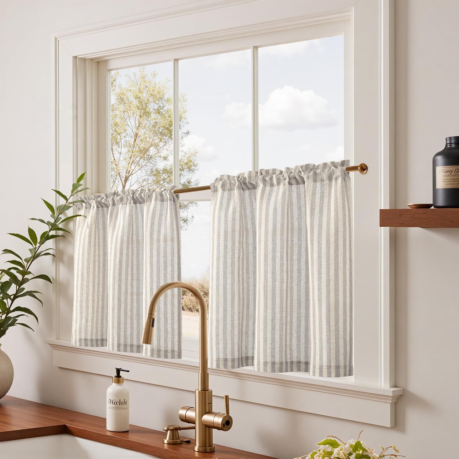 Rustic Striped Design: Evenly spaced vertical stripes give a neat, orderly look while subtly guiding the eye upward. The natural linen texture and gentle drape add understated charm, creating a clean and cozy feel for your space