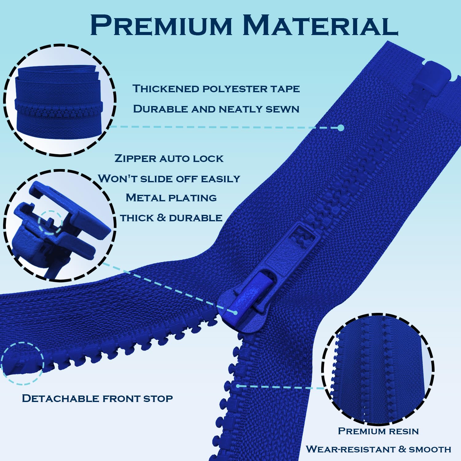 【Size】The Product Contains 3PCS Ocean Blue Zippers, With A Length Of 27 Inches And A Left Hand Zipper. 27 inch from bottom to top (teeth length), the full length is 28 inch end to end.