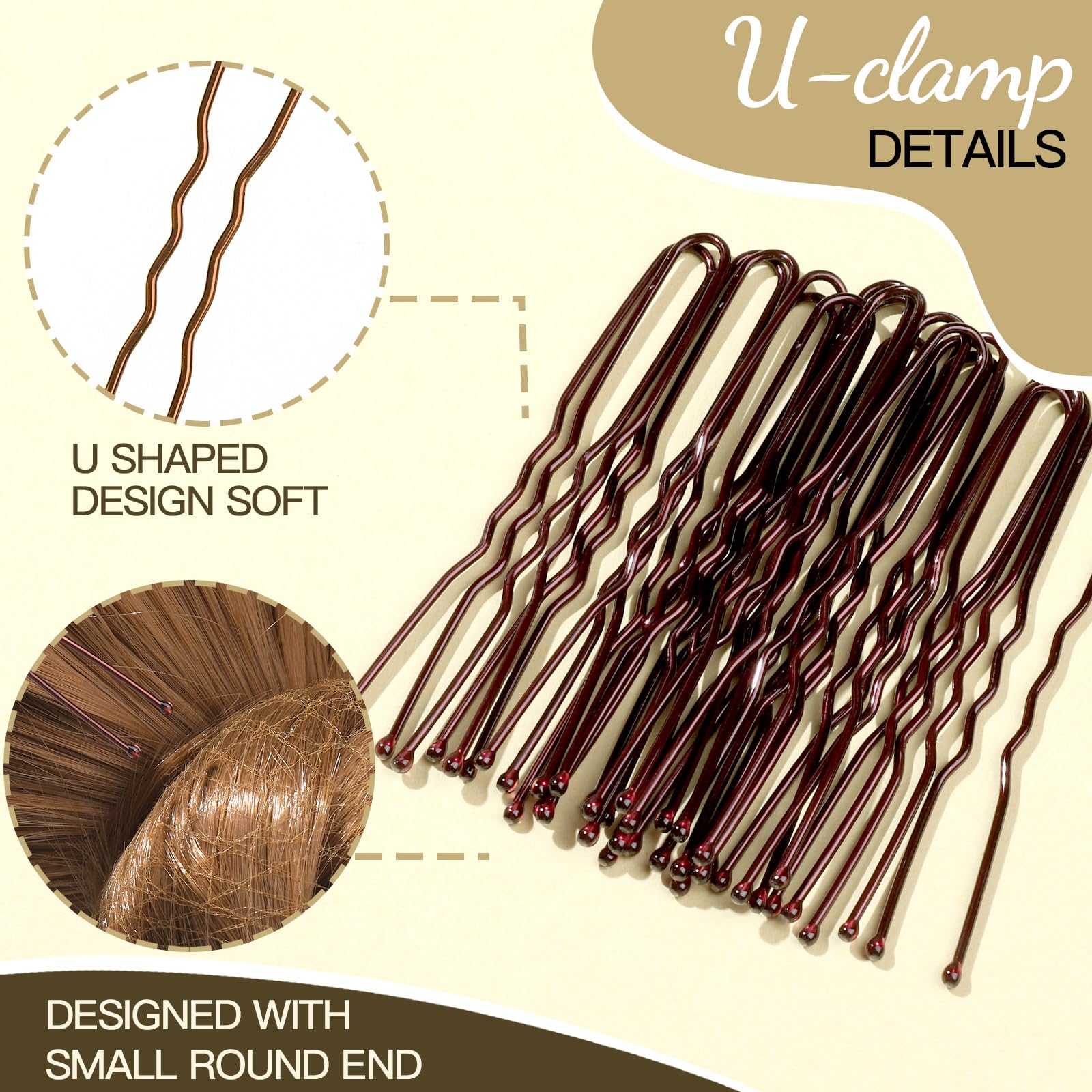 U Shaped Hair Pins: The hair bun pins are made of good quality metal and not easy to break with brown color and no easy to fade after using a long time. Designed with small ball ends which can prevent from hurting your hair and scratching the scalp. Useful tools to hold your hair in place and avoid falling down.