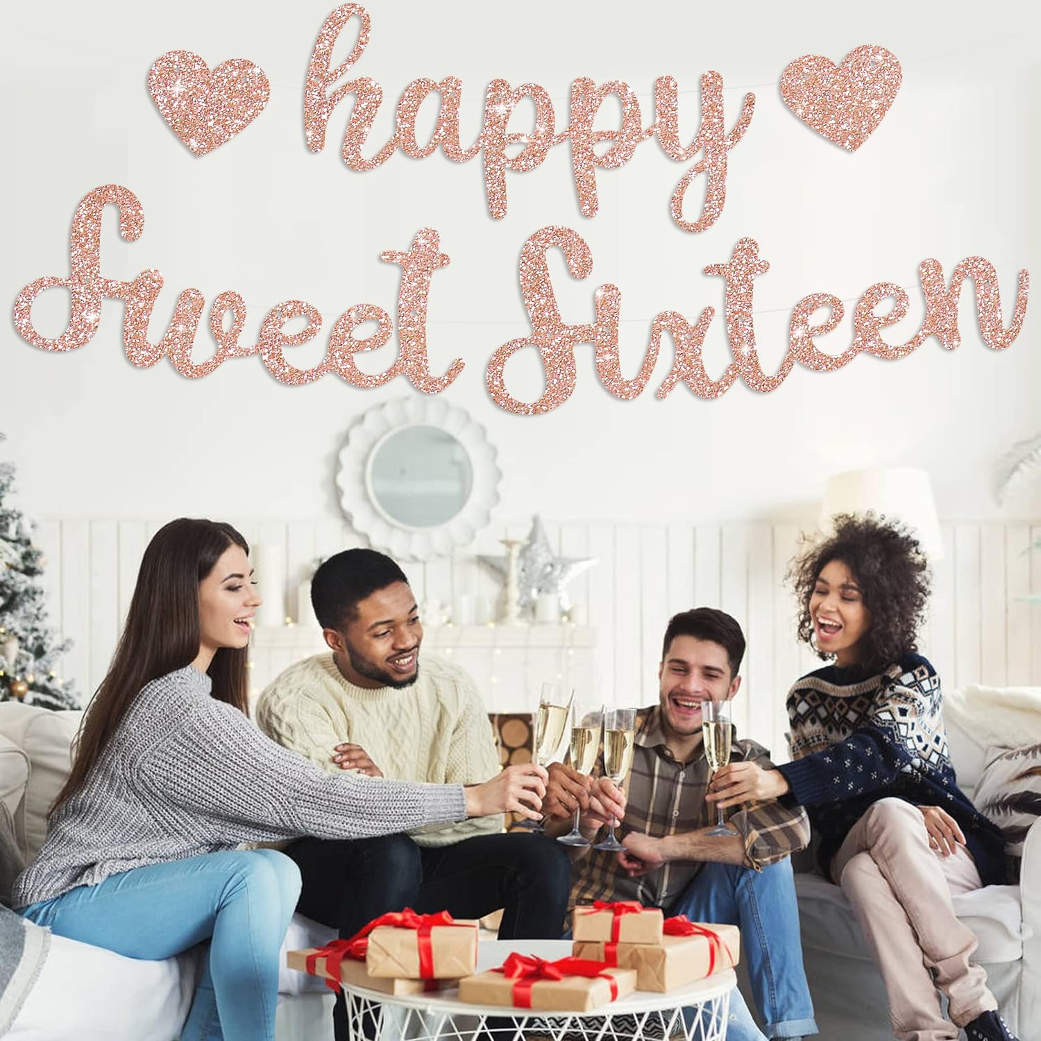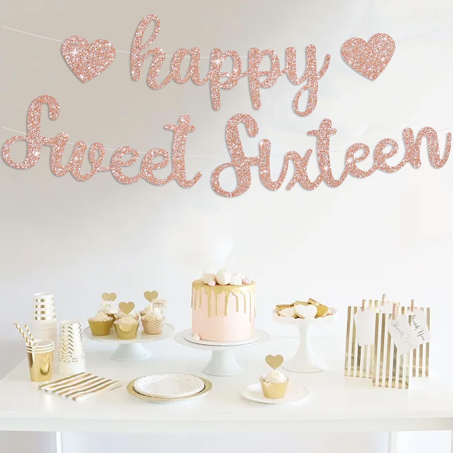 【Product includes】 : A gold glitter Happy Sweet Sixteen birthday banner is included in our product. It is a very convenient birthday banner that can save your time and decorate your birthday very well.