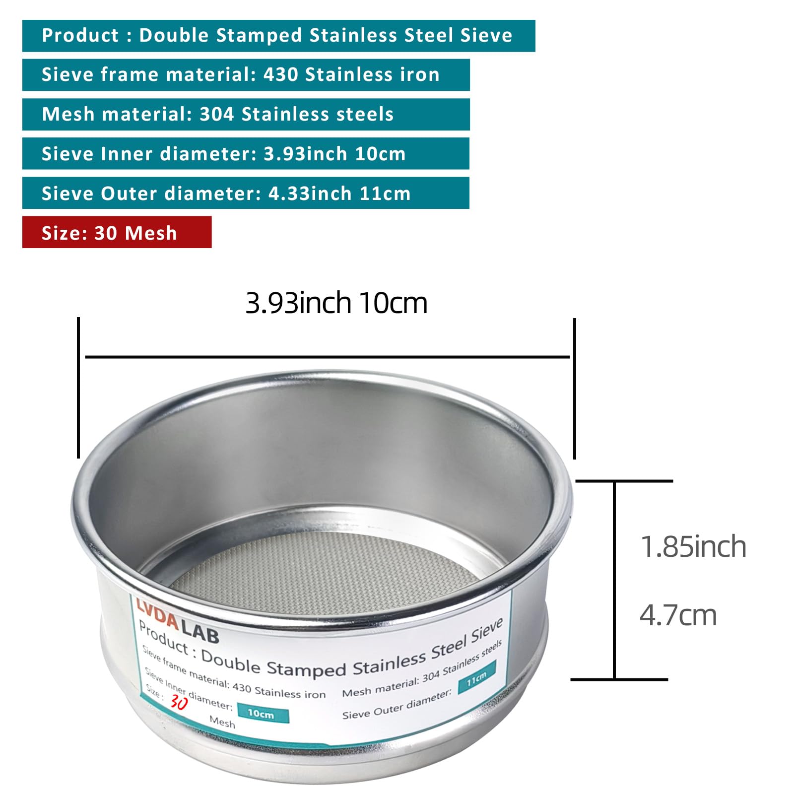 𝐒𝐩𝐞𝐜𝐢𝐟𝐢𝐜𝐚𝐭𝐢𝐨𝐧 ---The diameter of this lab sample sieve is 10cm/4in diameter, height 4.7cm/1.85in.