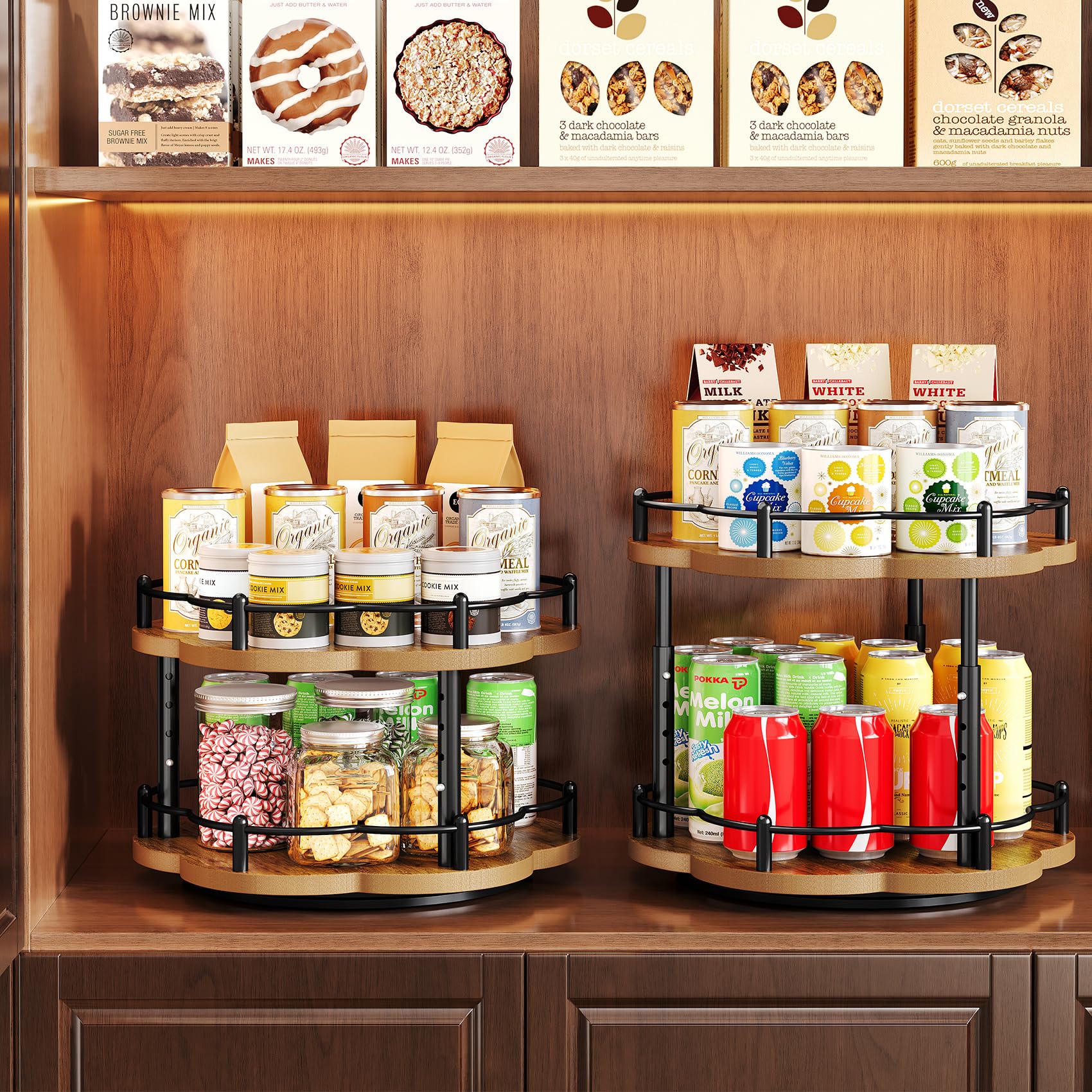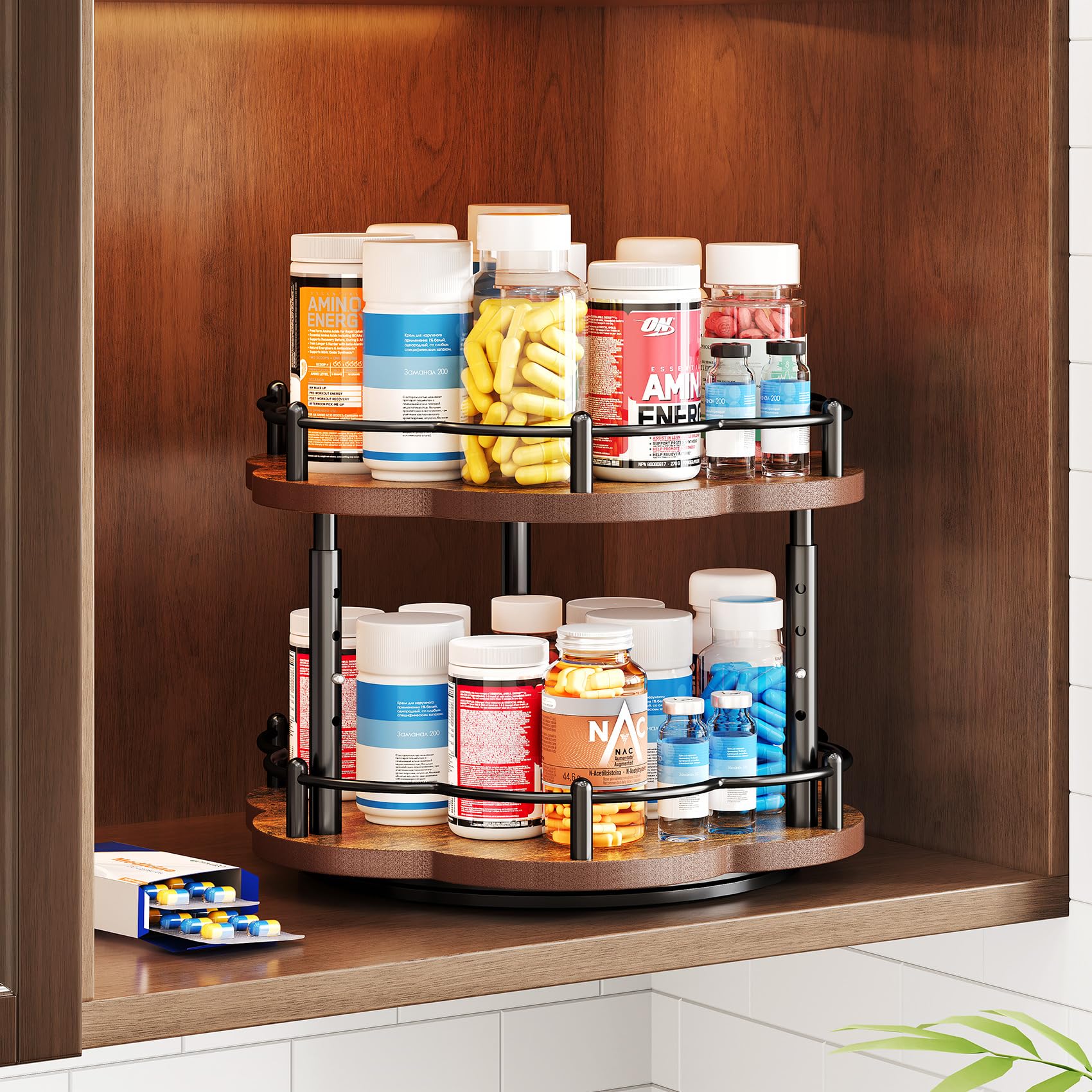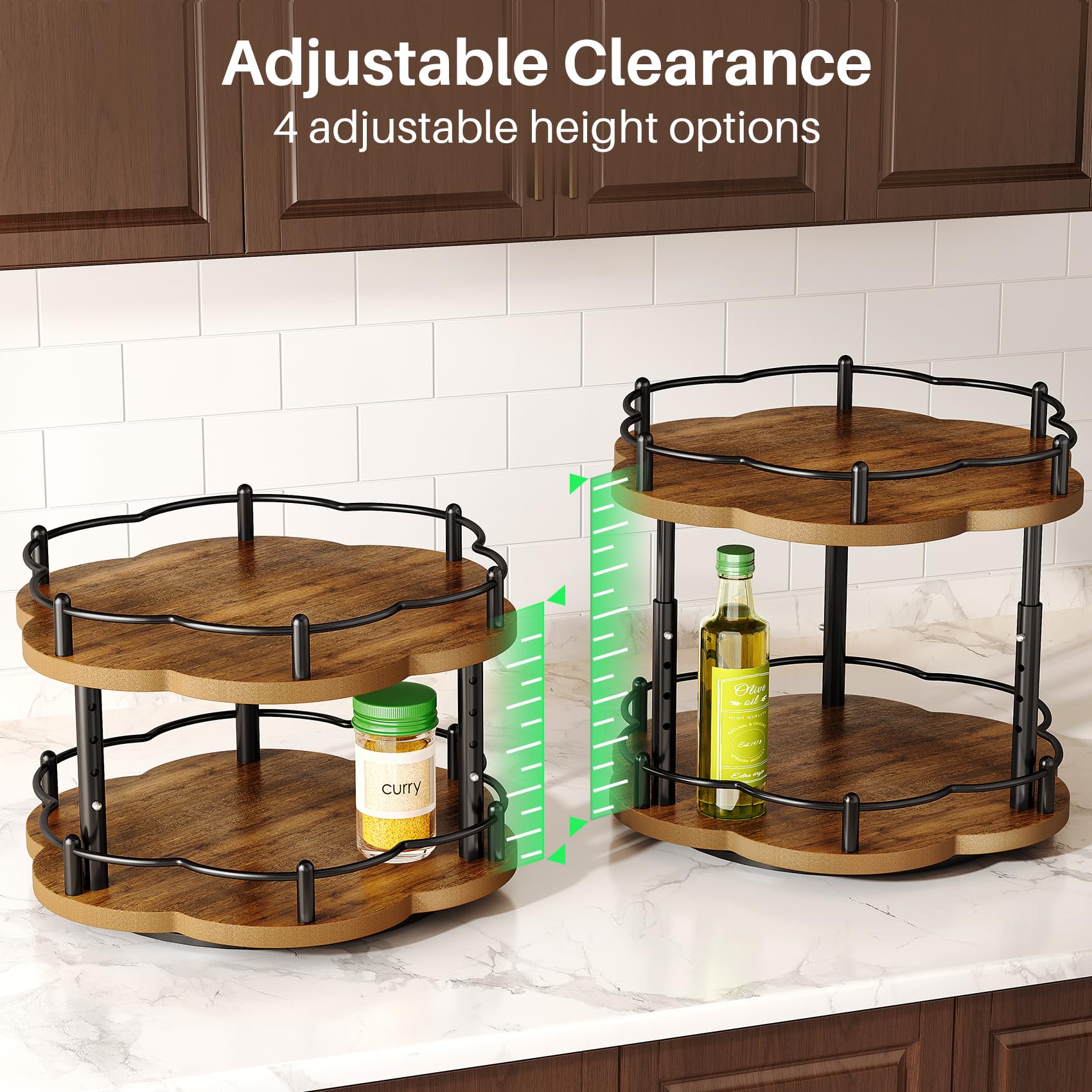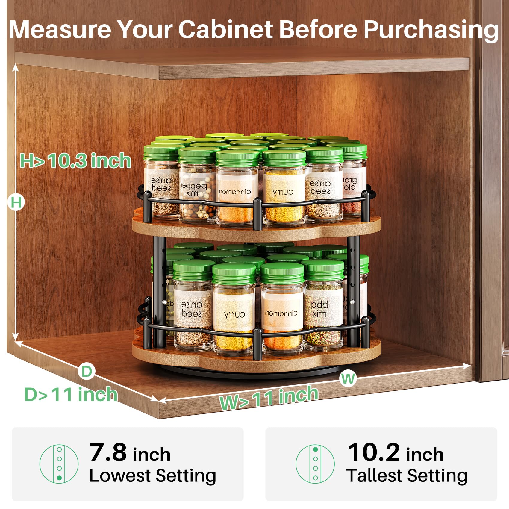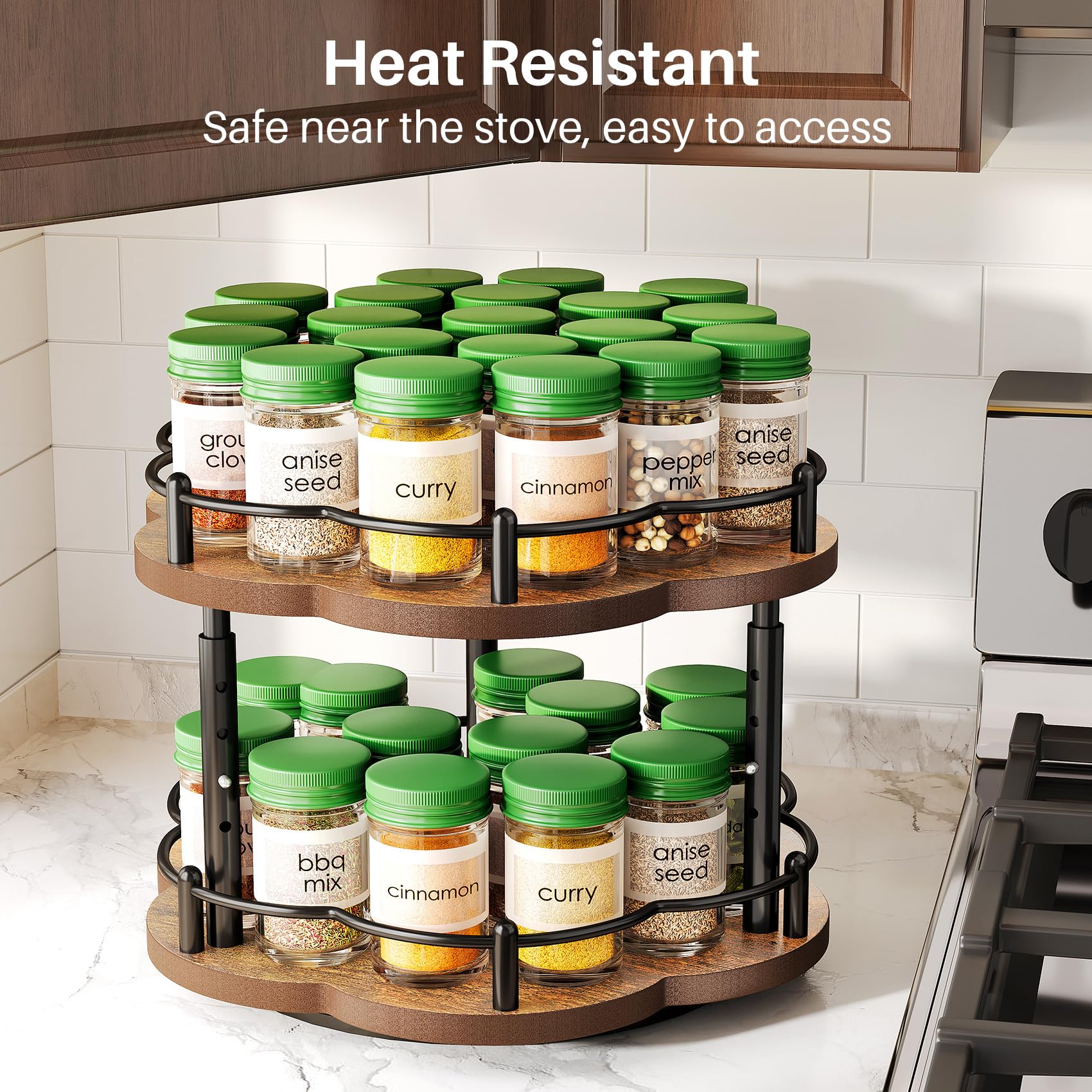 Durable Wood Construction: The table surface of this Lazy Susan spice rack is crafted from wood, offering enhanced sturdiness compared to plastic and superior heat resistance compared to metal. The natural wood material is easy to clean, durable, and perfect for use near stoves.