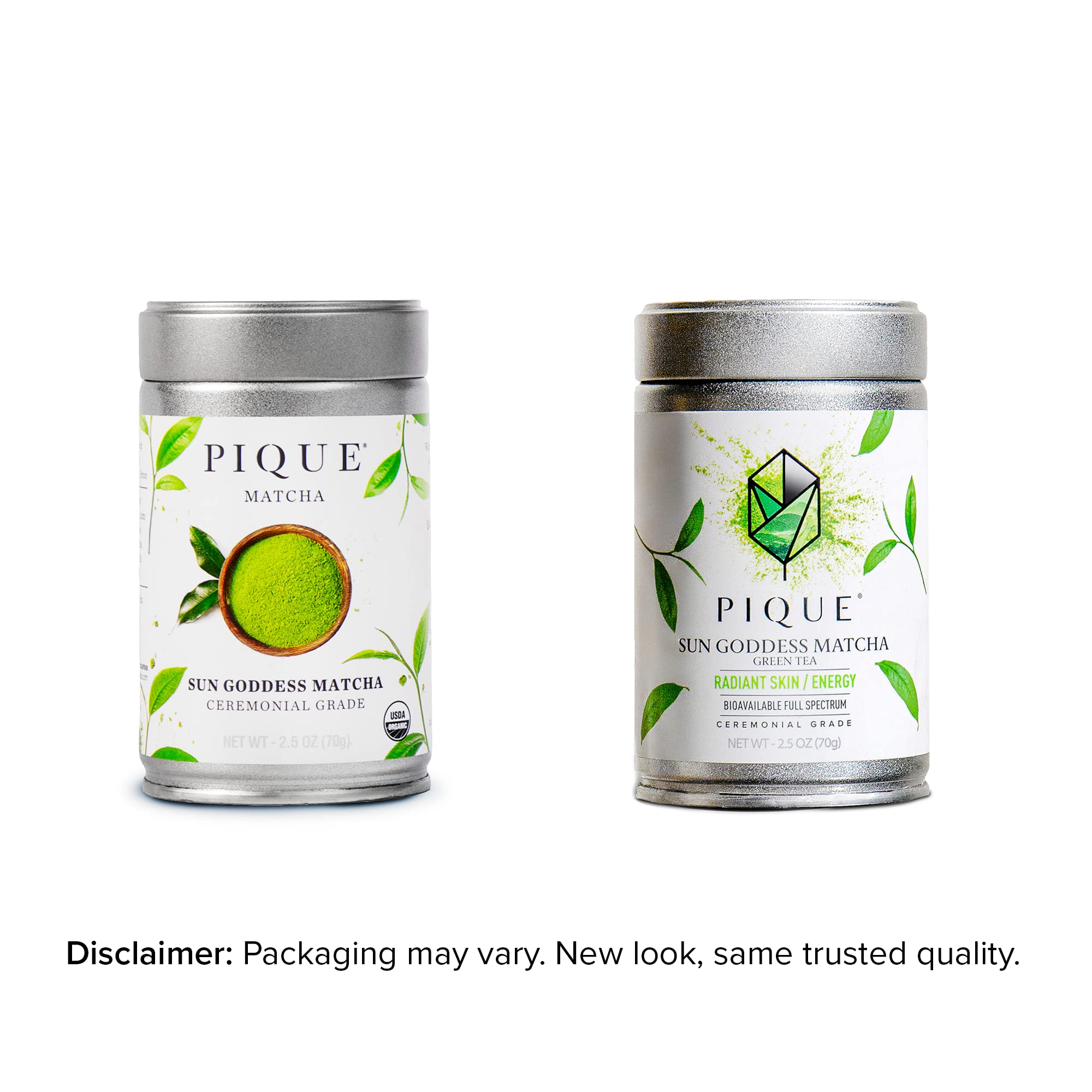 Pique's Sun Goddess Matcha is made of real, organic first harvest ceremonial grade matcha green tea powder and is quadrupled toxin screened for toxins and pesticides. Authentically sourced from the lush valleys in Kagoshima, Japan, the furthest distance from environmental toxins and neighbors with Okinawa (home to some of the longest living people on Earth). Our tea trees are shaded 35% longer for concentrated l-theanine. Experience zen-inducing calm, sustained energy and laser-sharp focus from the unique combination of l-theanine and time-released tea caffeine. Used for centuries by Buddhist monks to energize the mind, calm the body and hone your spirit. High in antioxidants, like ECGC, vitamins and minerals. Our high quality first harvest ceremonial grade matcha is great for a delicious, healthy boost to lattes, smoothies, baked goods, and more!