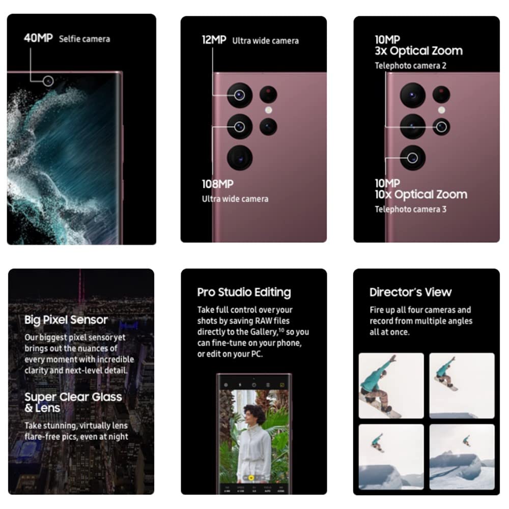 PRODUCT OVERVIEWGalaxy S22 is redefining the epic standard – both for what a smartphone can do with video and for what you can communicate, create, and experience with it. In other words, if you’ve got something to say, Galaxy S22 makes it possible to say anything you want with video, at any time-even in the darkness of night.KEY FEATURESLight up your life with 8K video - Shoot videos that rival how epic your life is with stunning 8K recording.So smooth, you won’t believe you shot it - Video you capture is effortlessly smooth, thanks to Auto Focus Video Stabilization on Galaxy S22.¹Low light? No problem - Capture the night with crystal-clear, bright pics and videos, no matter the lighting with Night Mode.Bring out the beauty with every pic - Put all your favorite details on display. Portrait Mode auto- detects and adjusts to what you want front and center, making all your photos worthy of a frame.Resolution that wows - From elaborate landscapes to intricate creations, capture vivid detail with 50MP resolution.Smooth. Bright. Epic - Your favorite content will look even more epic on a bright display with Vision Booster.Color that adapts to your day - Streaming on the go, working from your patio or binge-watching late into the night? The Galaxy S22 adaptive screen automatically optimizes color and brightness, outdoors and indoors.A battery that keeps your day going - Power every scroll, click, tap and stream all day long² with an intelligent battery that works with you, not against you.Super-fast charging that won’t hold you back - Dive back into action at a moment’s notice with 25W Super-Fast Charging.⁴A new standard of premium - Expertly engineered to outlast your day with class. Finally, a phone that meets your standards.Don’t just stream it. Share it - Watch viral YouTube videos and content together with your friends, from anywhere.Get up close from afar - Your view just got an upgrade. 30x Space Zoom lets you get a VIP look from any seat.Snap a ton with just one